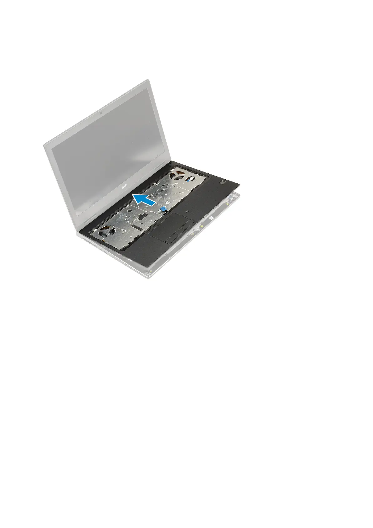 b. Replace the 2 (M2.0x3.0) screws to secure the palmrest to the system [1].