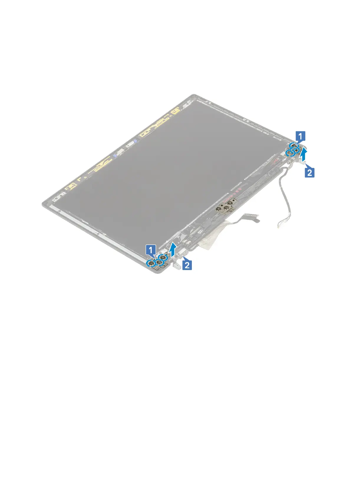 a. Remove the 6 (M2.5x3.5) screws that secure the display hinges to the display assembly [1].