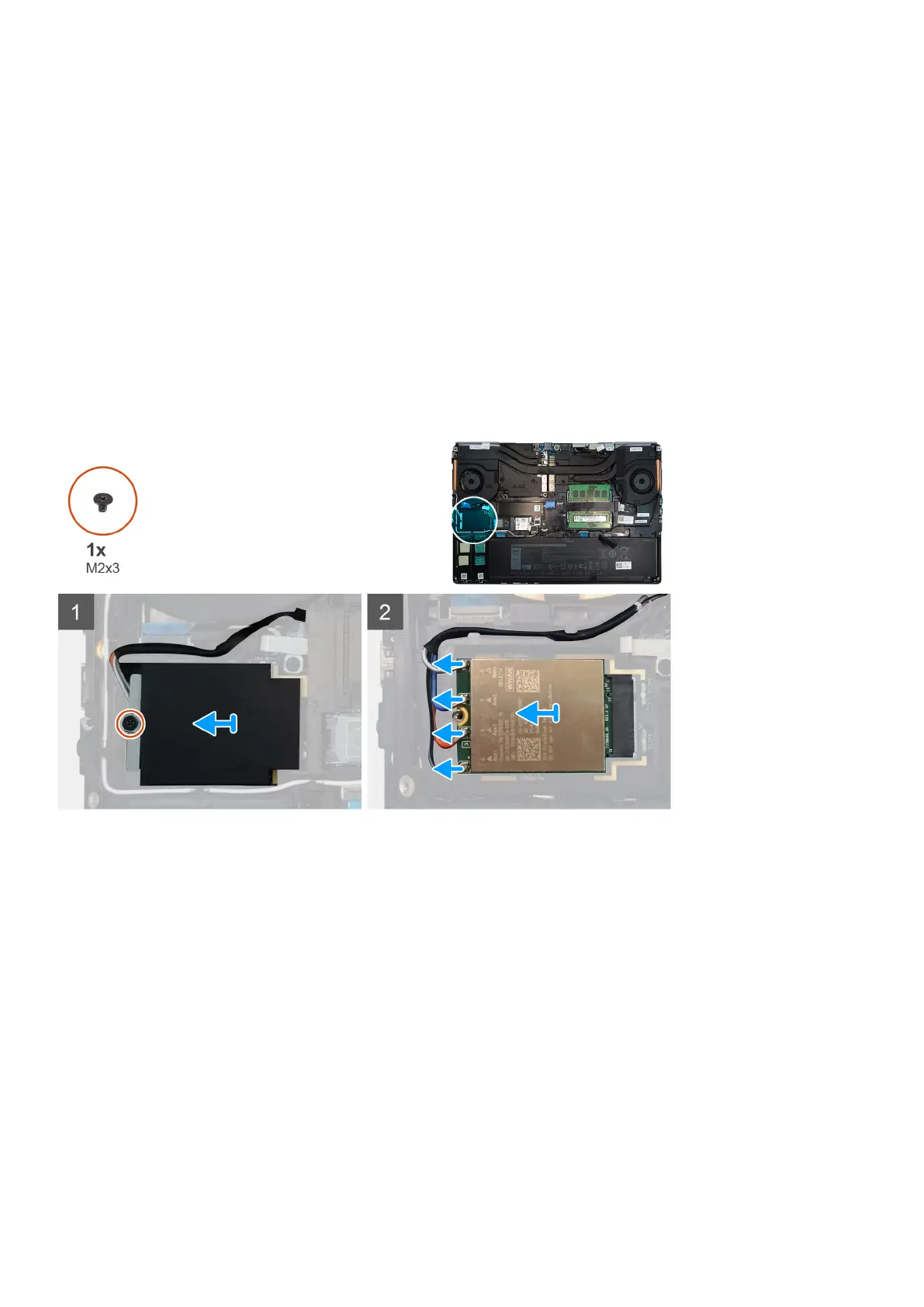 1. Loosen the (M2x3) screw that secures the WWAN card bracket to the system board.