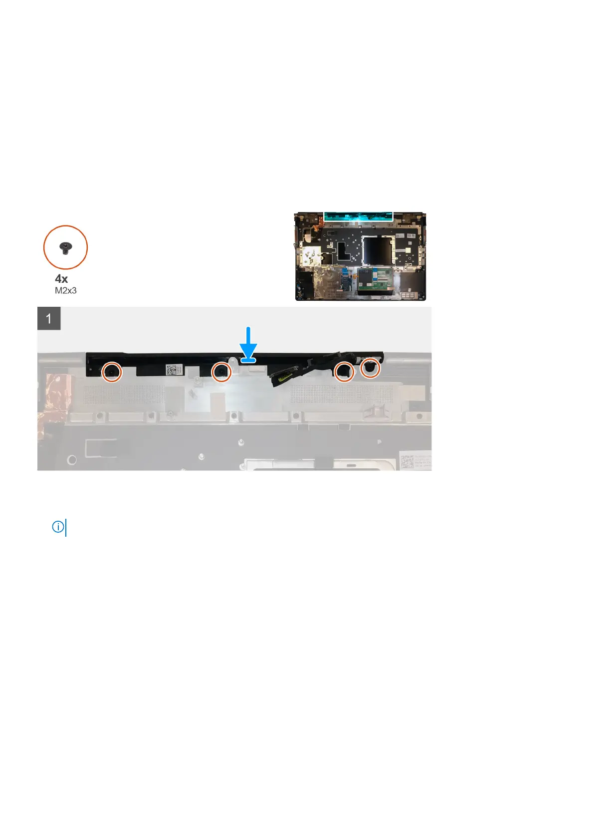 2. Replace the four (M2x3) screws to secure the middle cap in place.