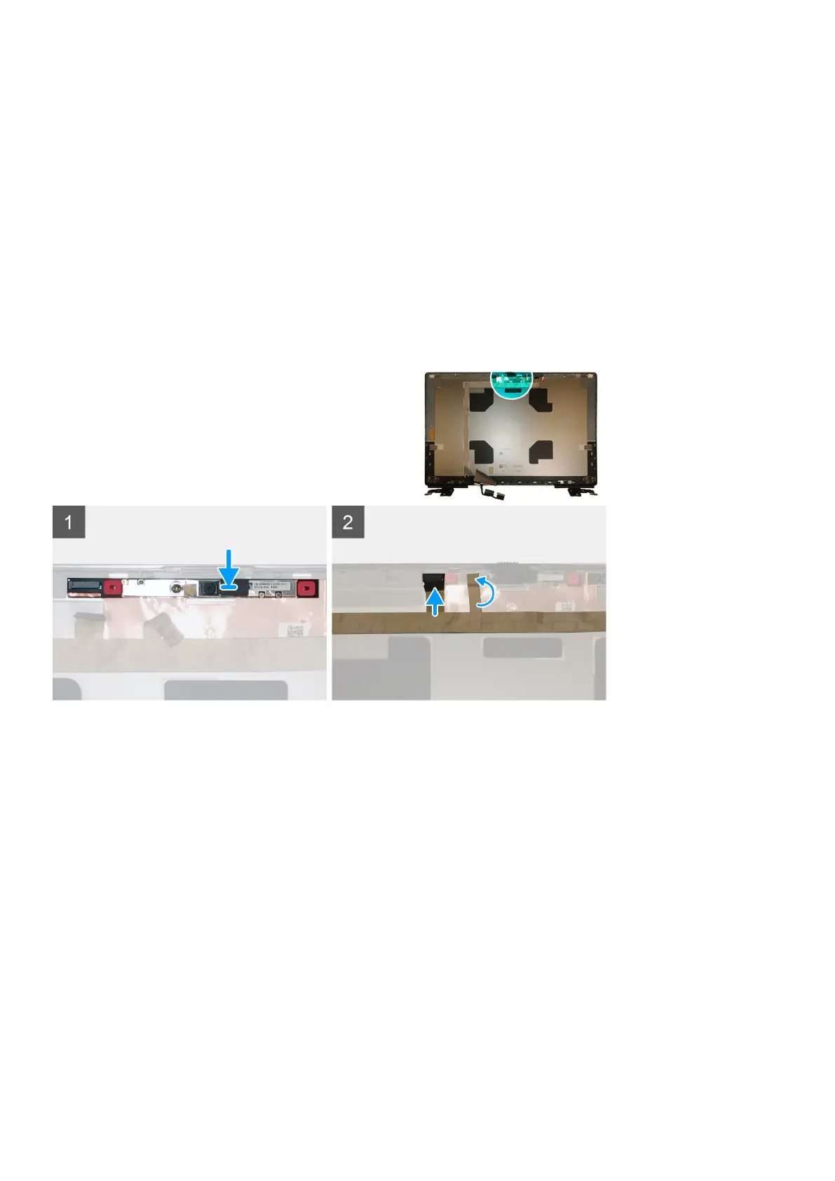 1. Place the camera module in its slot on the display back cover.
