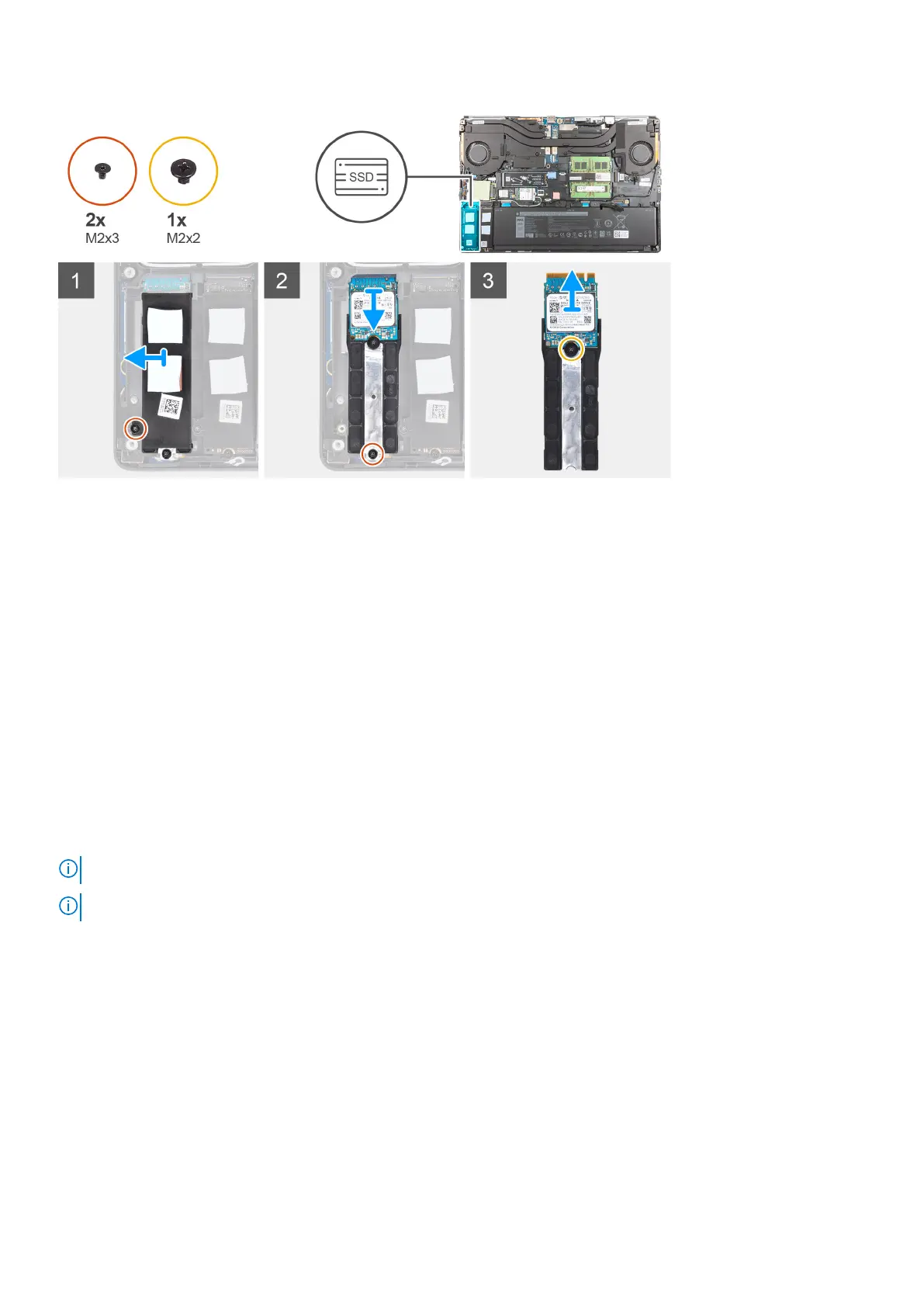 1. Remove the (M2x3) screw that secures the SSD thermal plate to the M.2 SSD module.