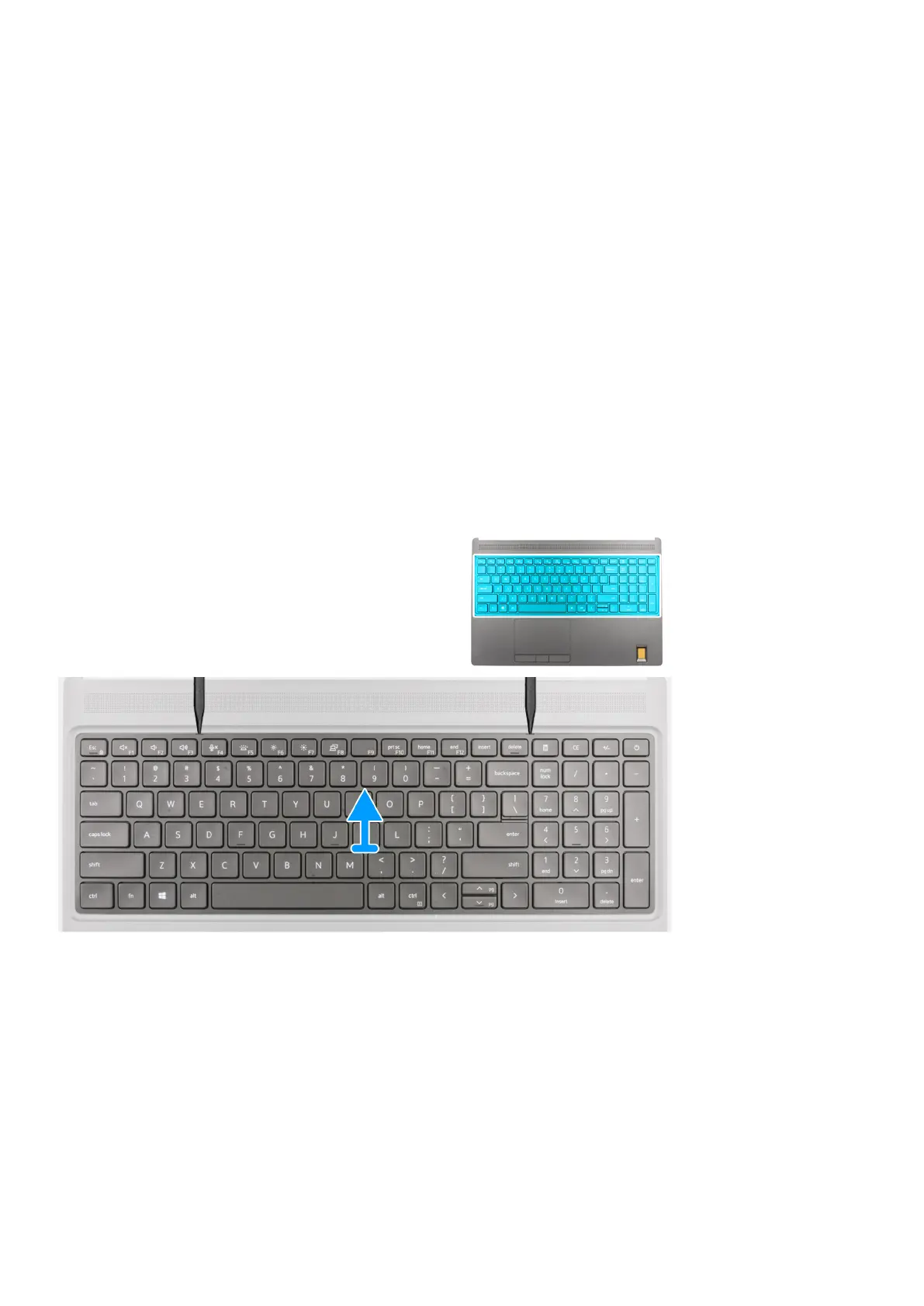 The figure indicates the location of the keyboard lattice and provides a visual representation of the removal procedure.