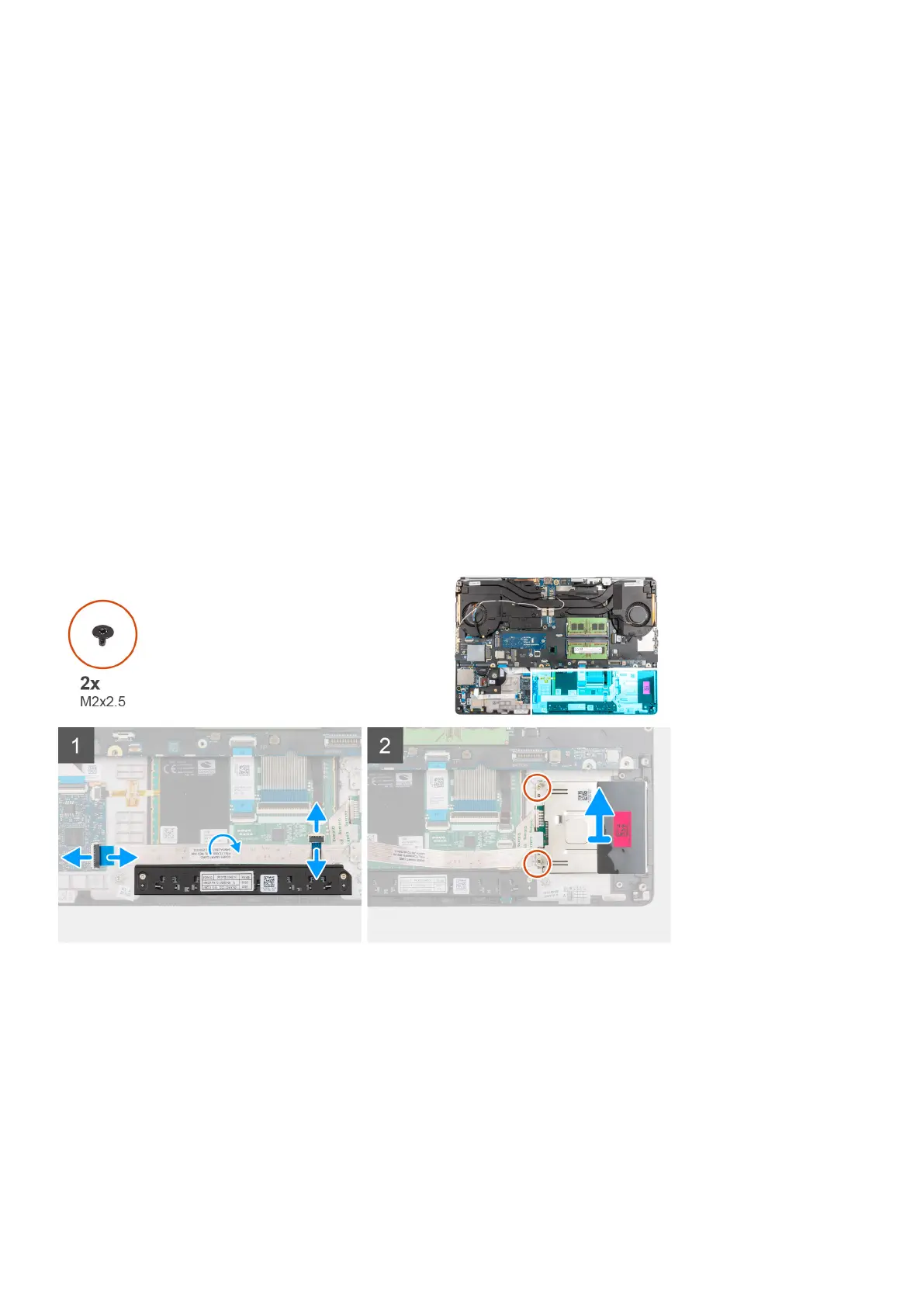 4. Remove the two (M2x2.5) screws that secure the smart-card reader to the computer.