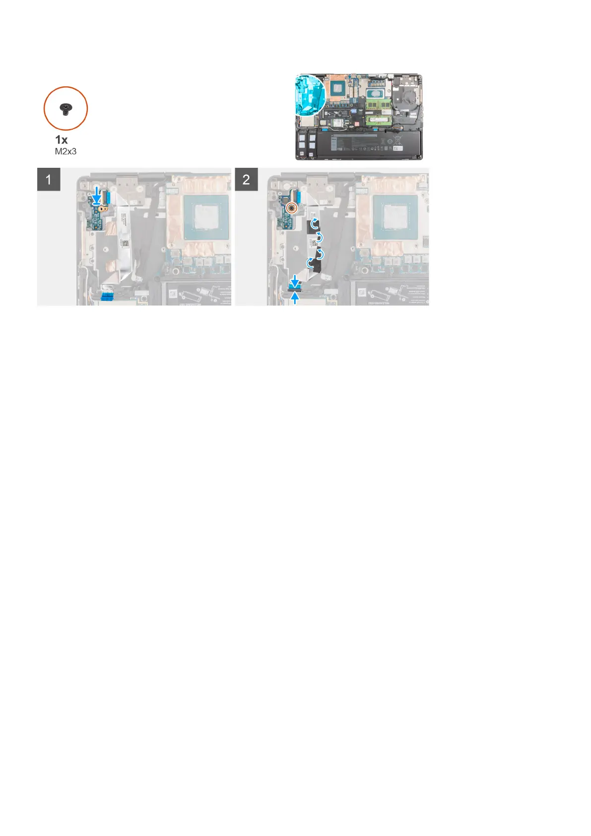 1. Connect the power button board FFC to the power button board.
