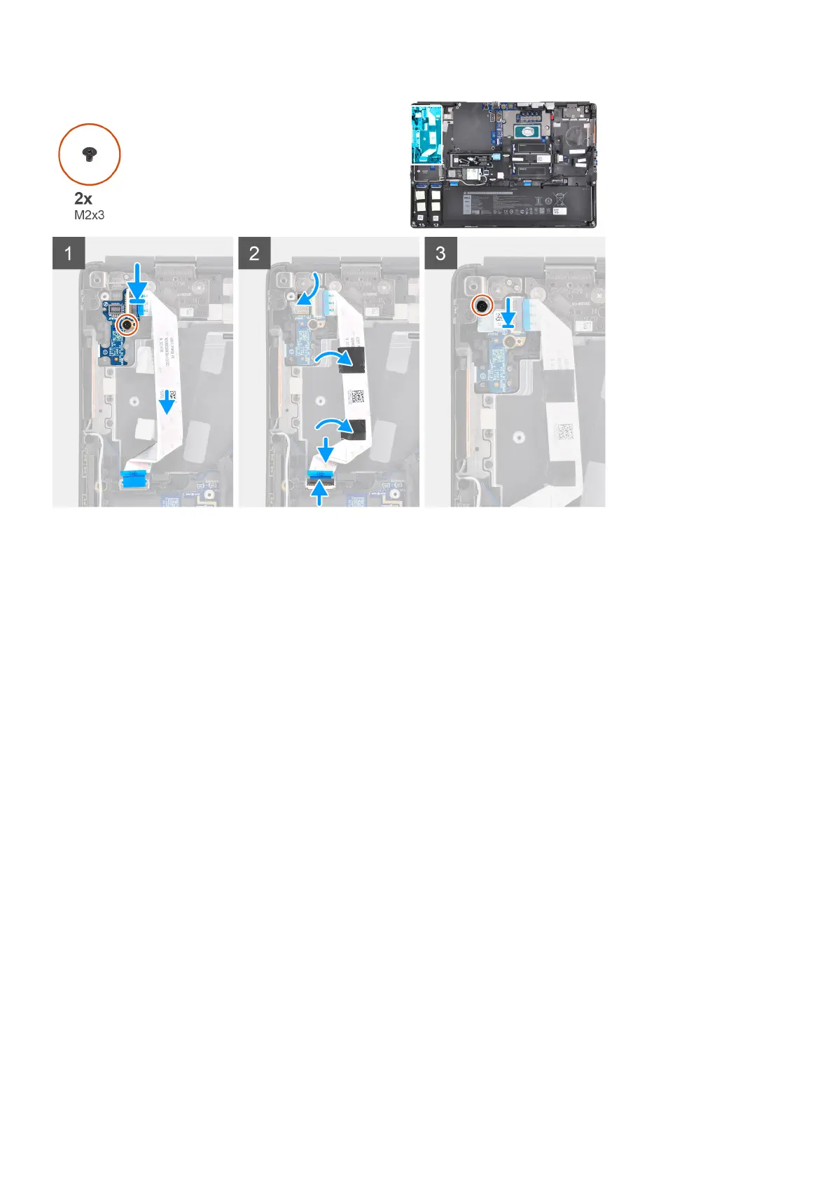 1. Connect the power button board FFC to the power button board.