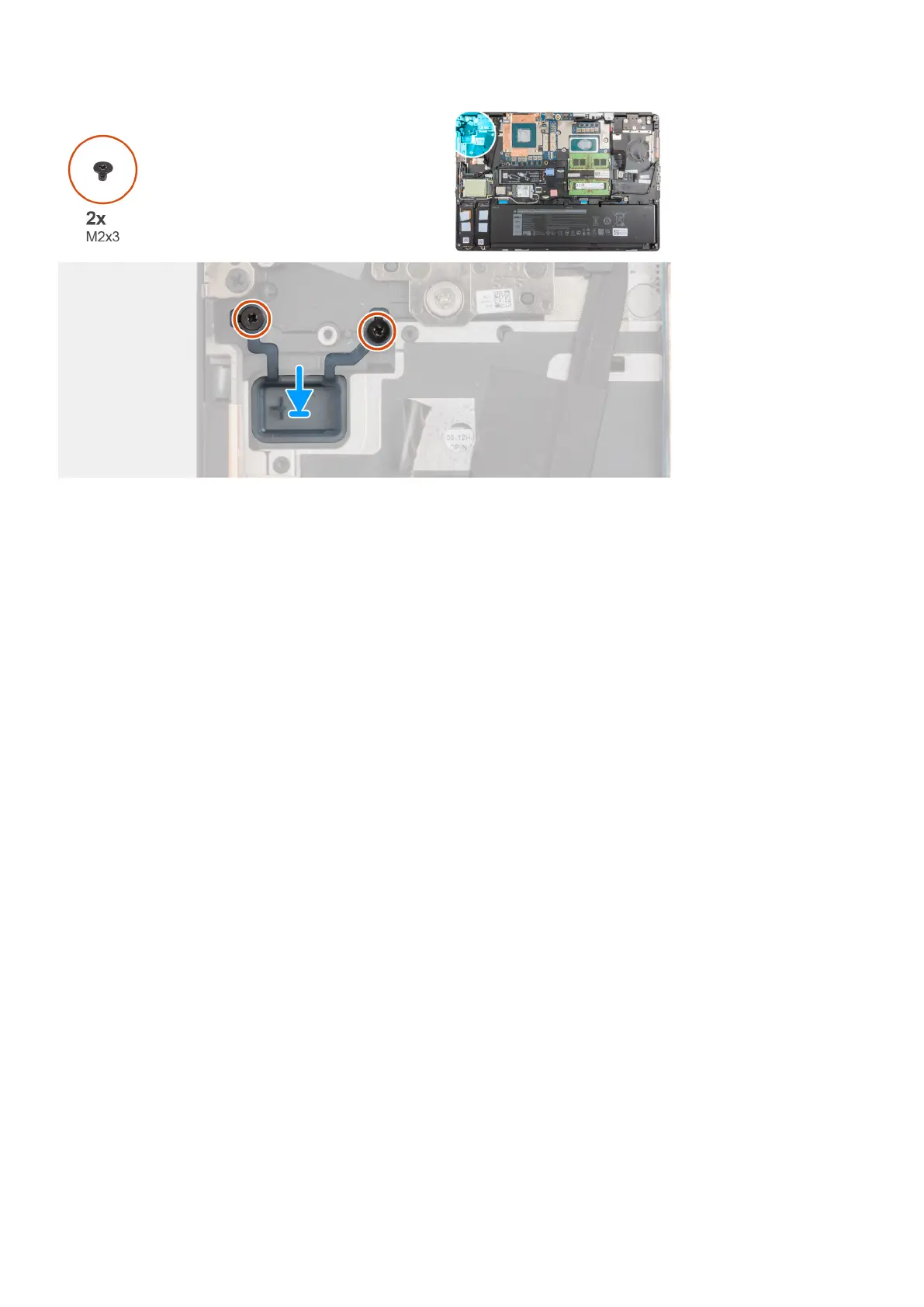 2. Replace the two (M2x3) screws to secure the power button in place.