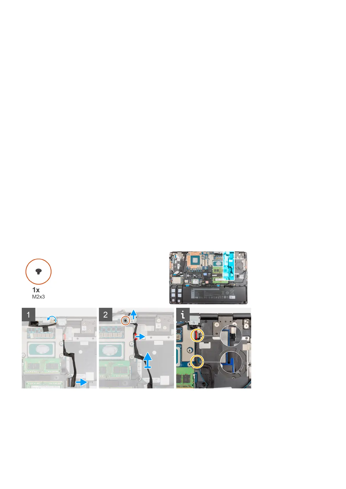 2. Peel and unroute the display cable from the route to access the power-adapter port slot.