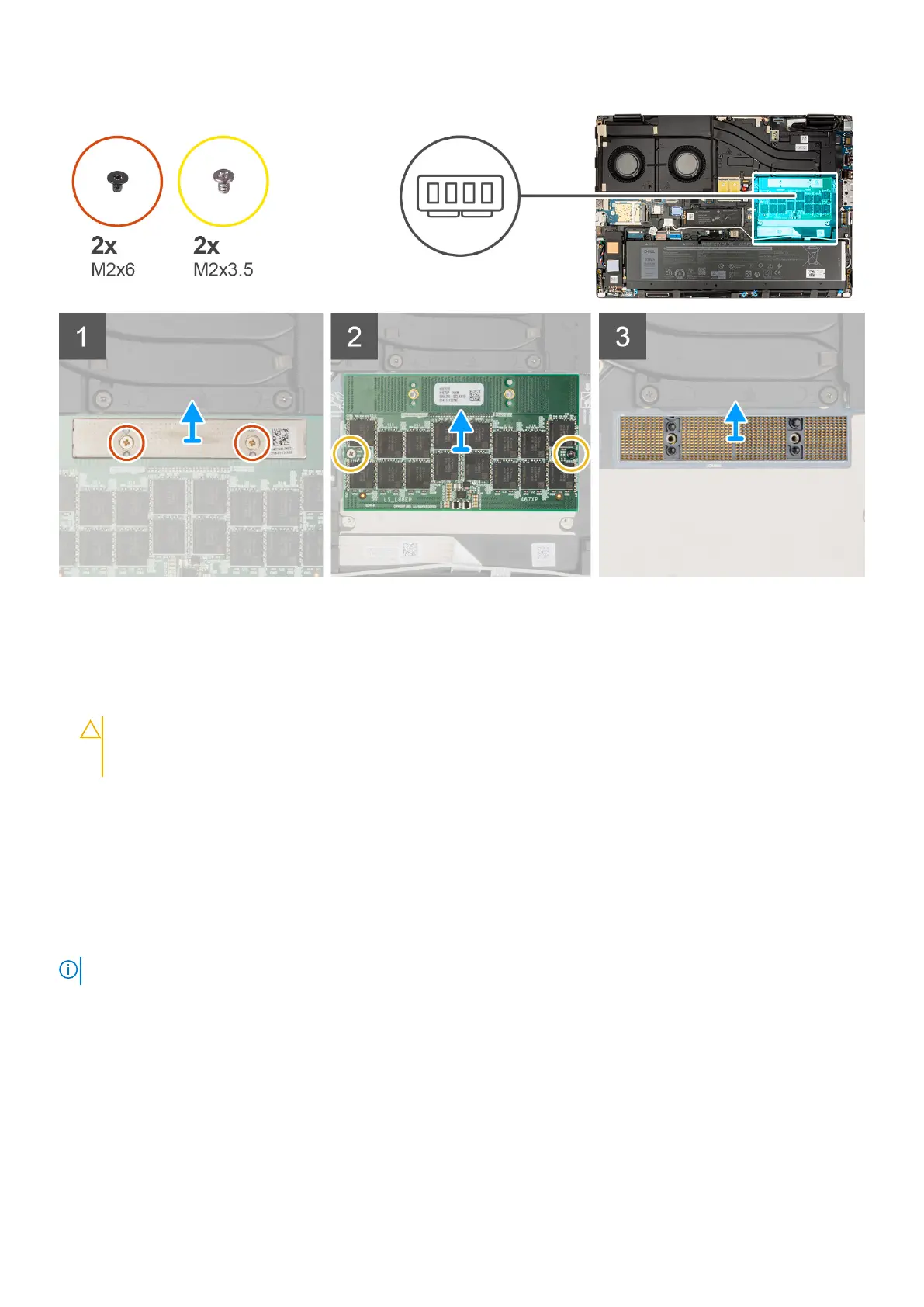 3. Remove the two (M2x3.5) screws that secure the CAMM module to the system board.