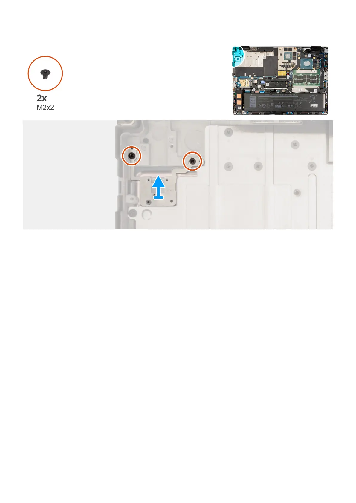 1. Remove the two (M2x2) screws that secure the power button in its slot on the computer.