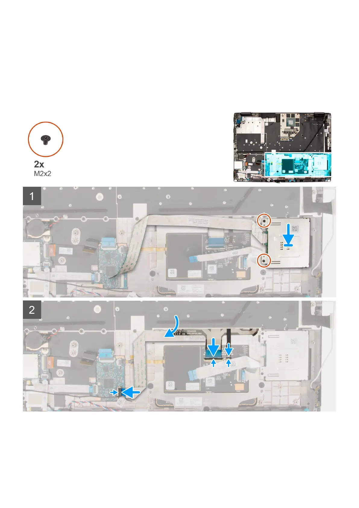 2. Replace the two (M2x2) screws to secure the smart-card reader in place.