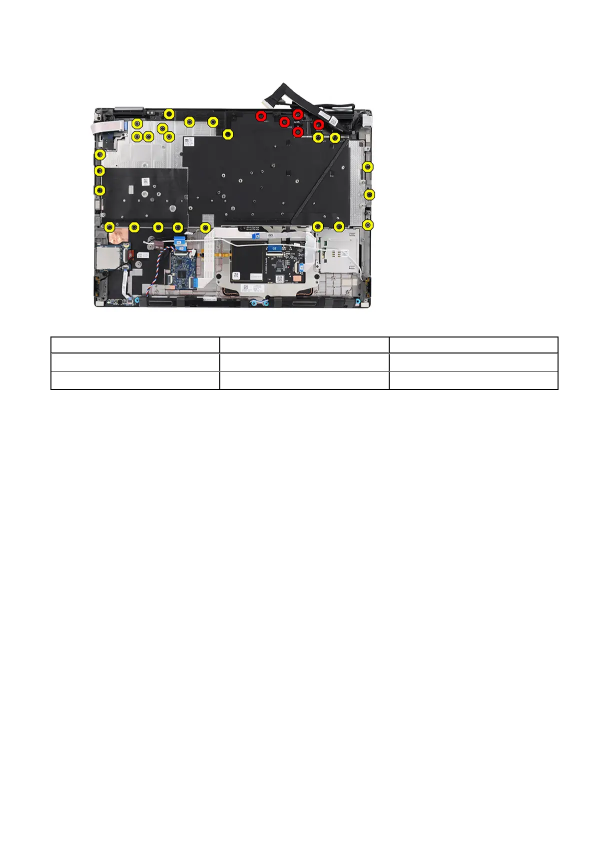 Table 3. Keyboard support plate screws