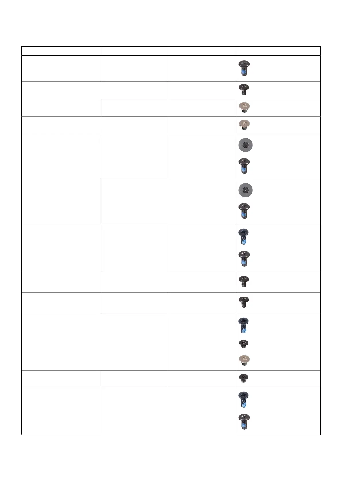 Component Screw type Quantity Screw image