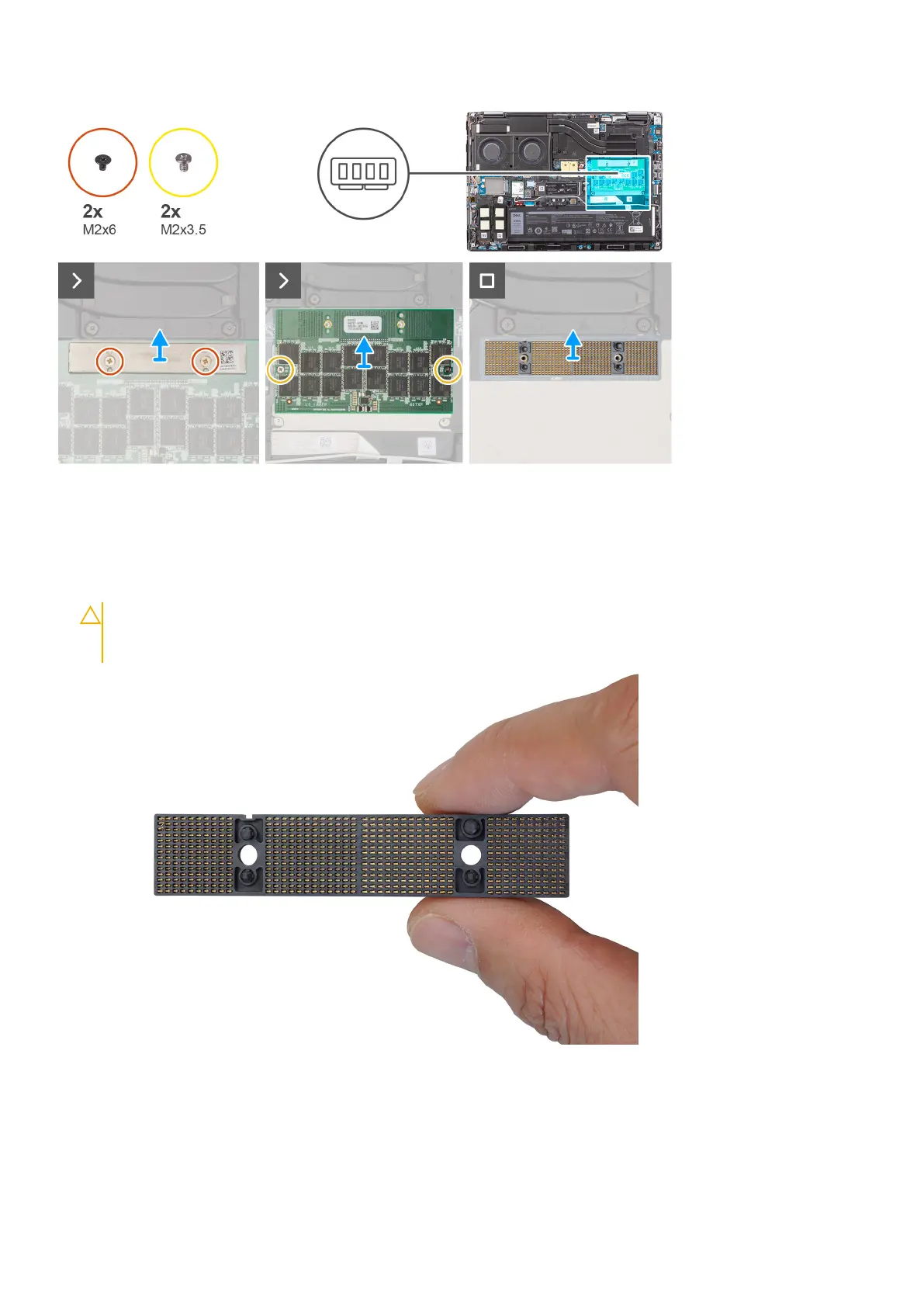 3. Remove the two (M2x3.5) screws that secure the CAMM module to the system board.