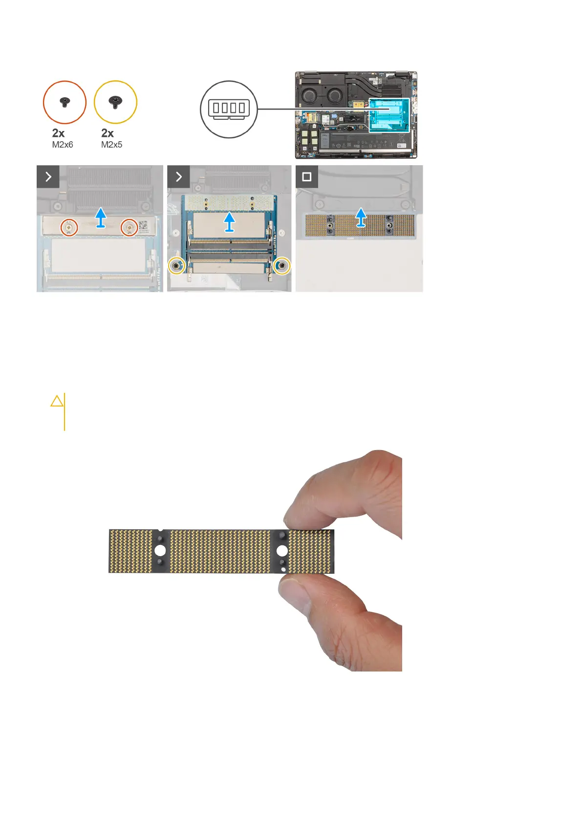 1. Remove the two (M2x6) screws that secure the memory bracket to the memory interposer board.