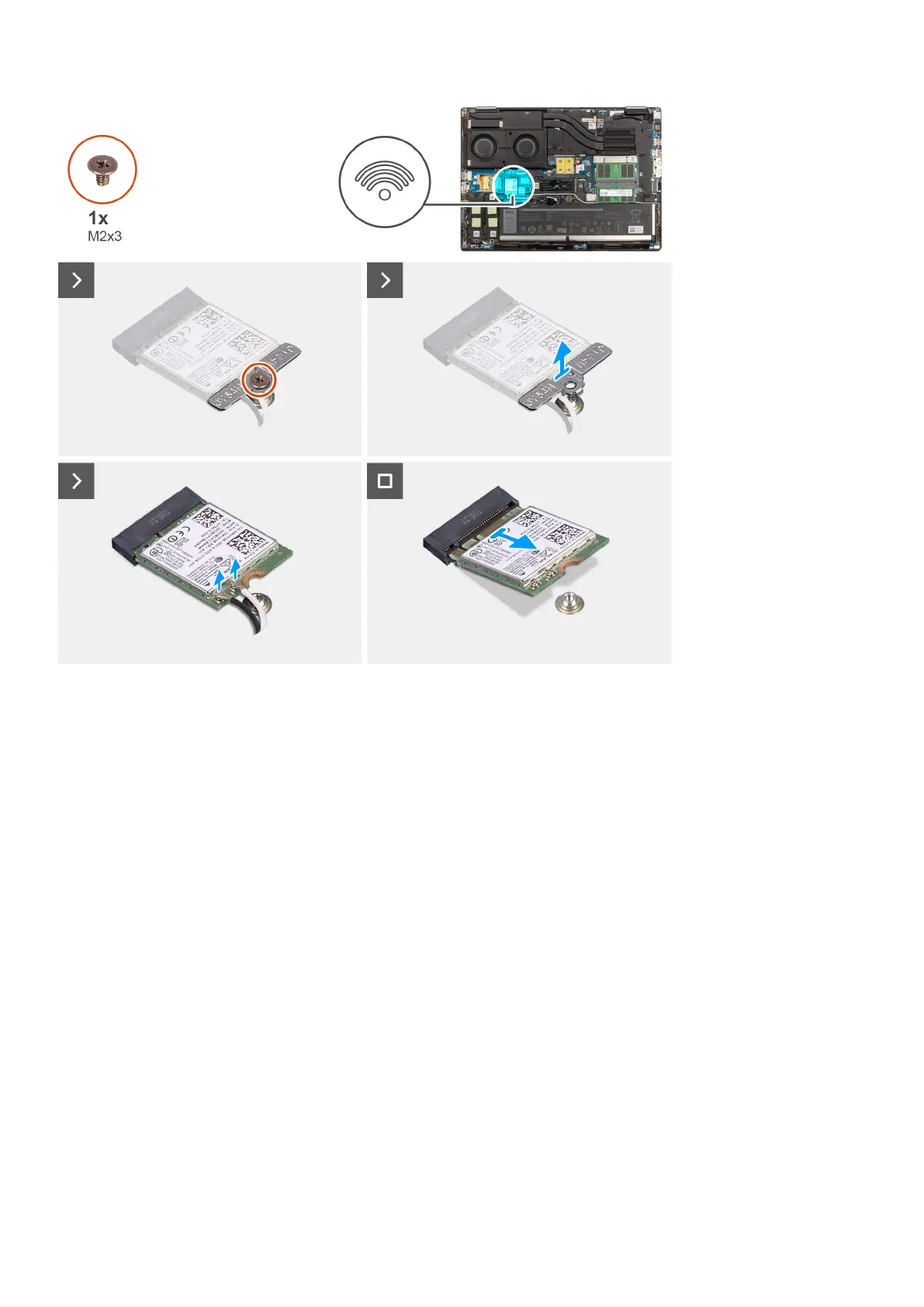 1. Remove the (M2x3) screw that secures the WLAN card bracket to the system board.