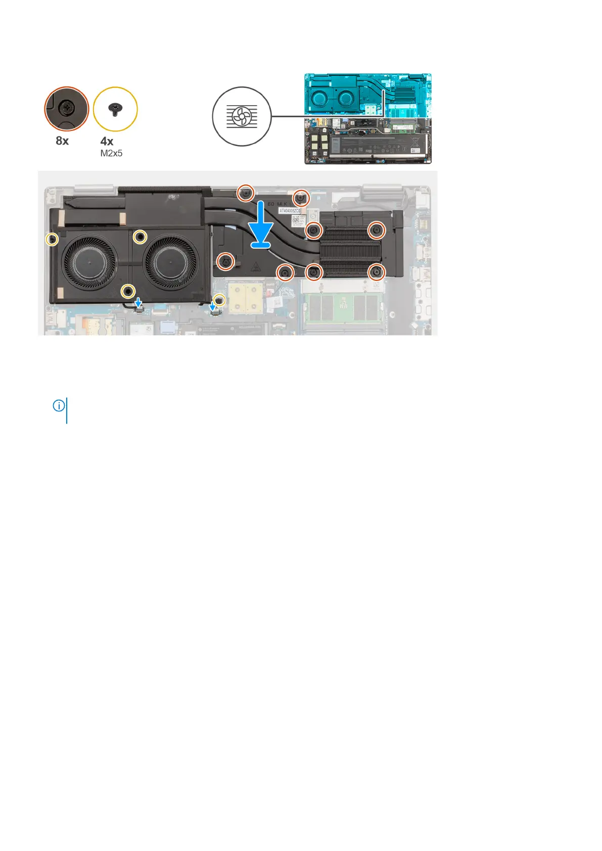 3. Replace the four (M2x5) screws to secure the fans to the system chassis.
