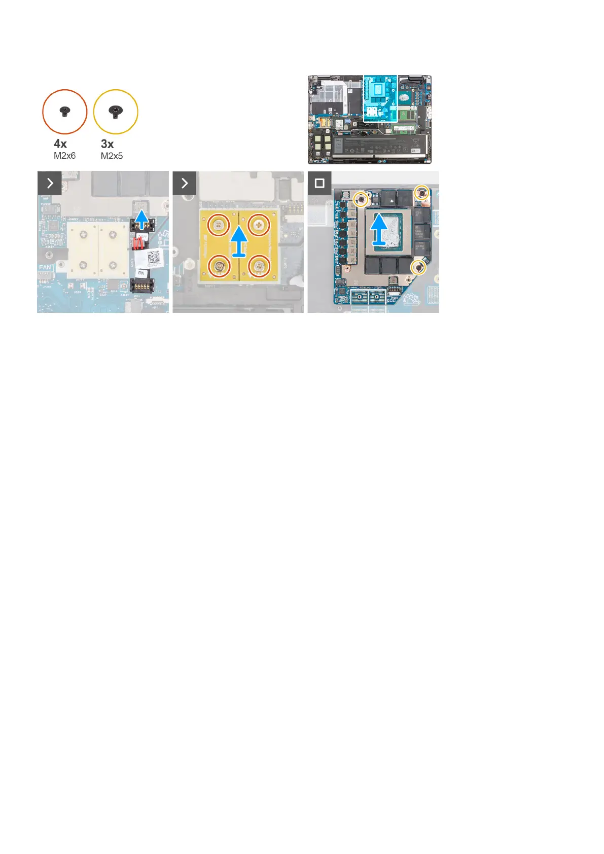 5. Remove the three (M2x5) screws that secure the GPU card to the system chassis.