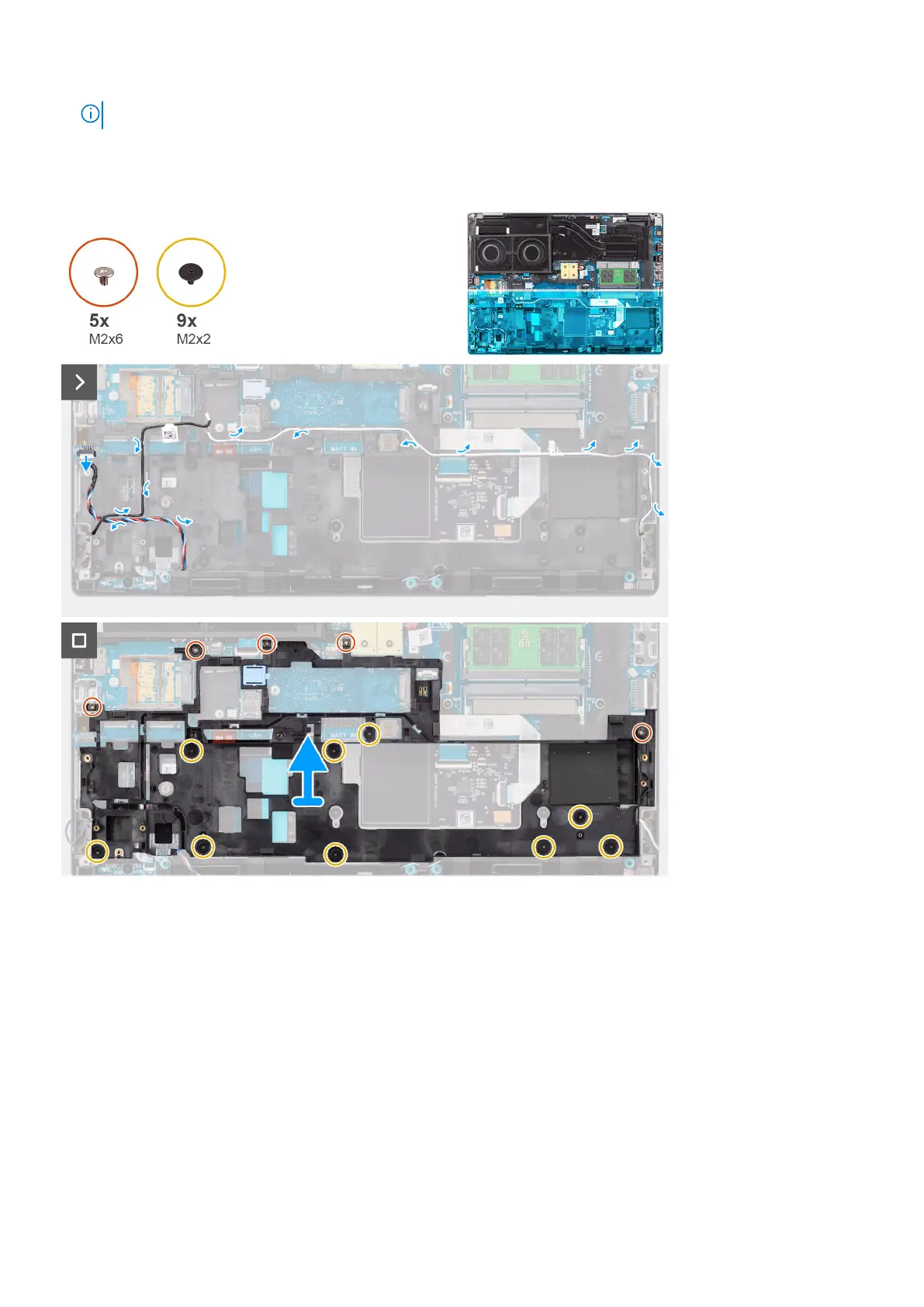 3. Remove the five (M2x6) and the nine (M2x2) screws that secure the inner frame to the computer chassis.
