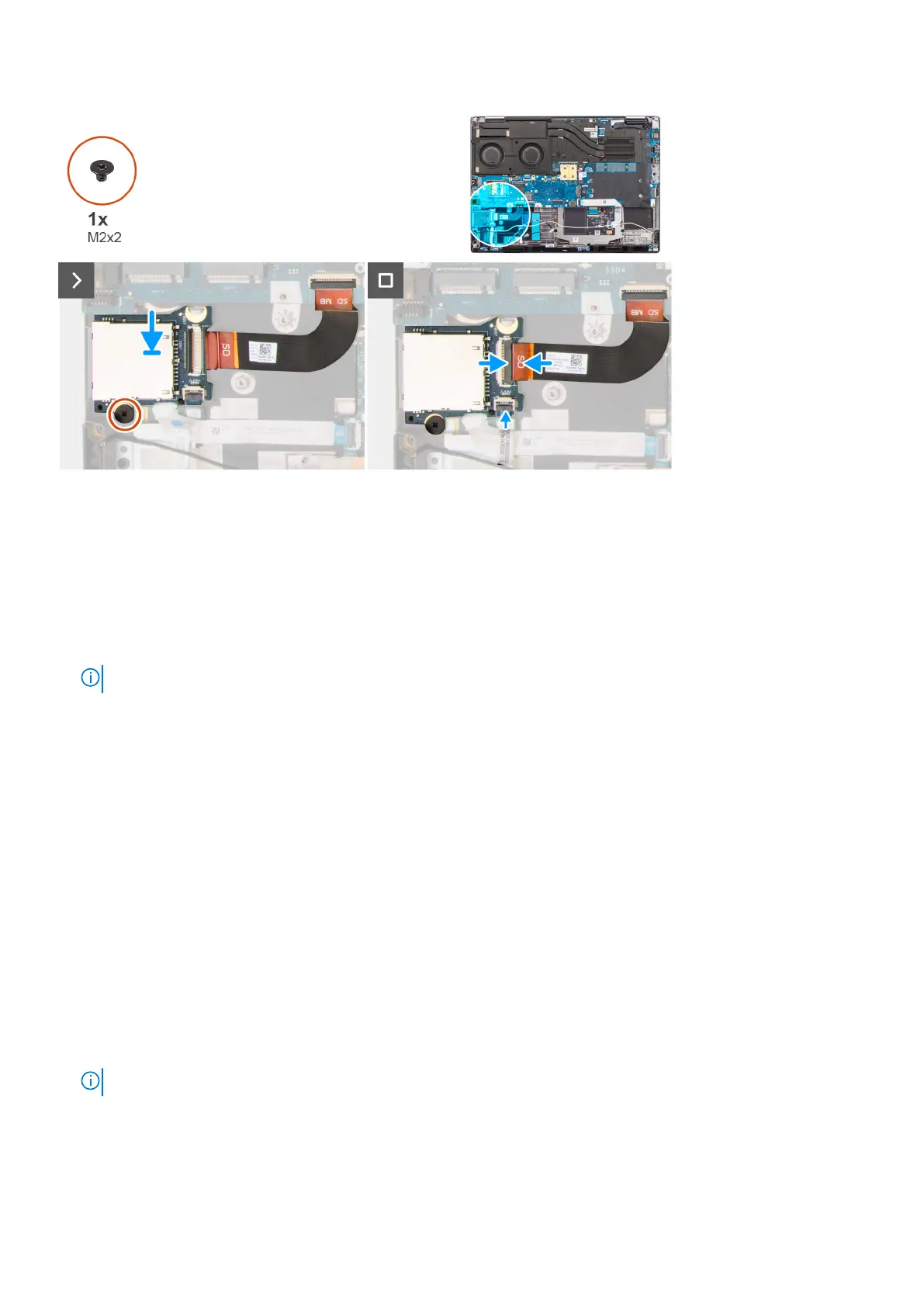 1. Align and place the SD card reader with the FPC into its slot on the computer chassis.