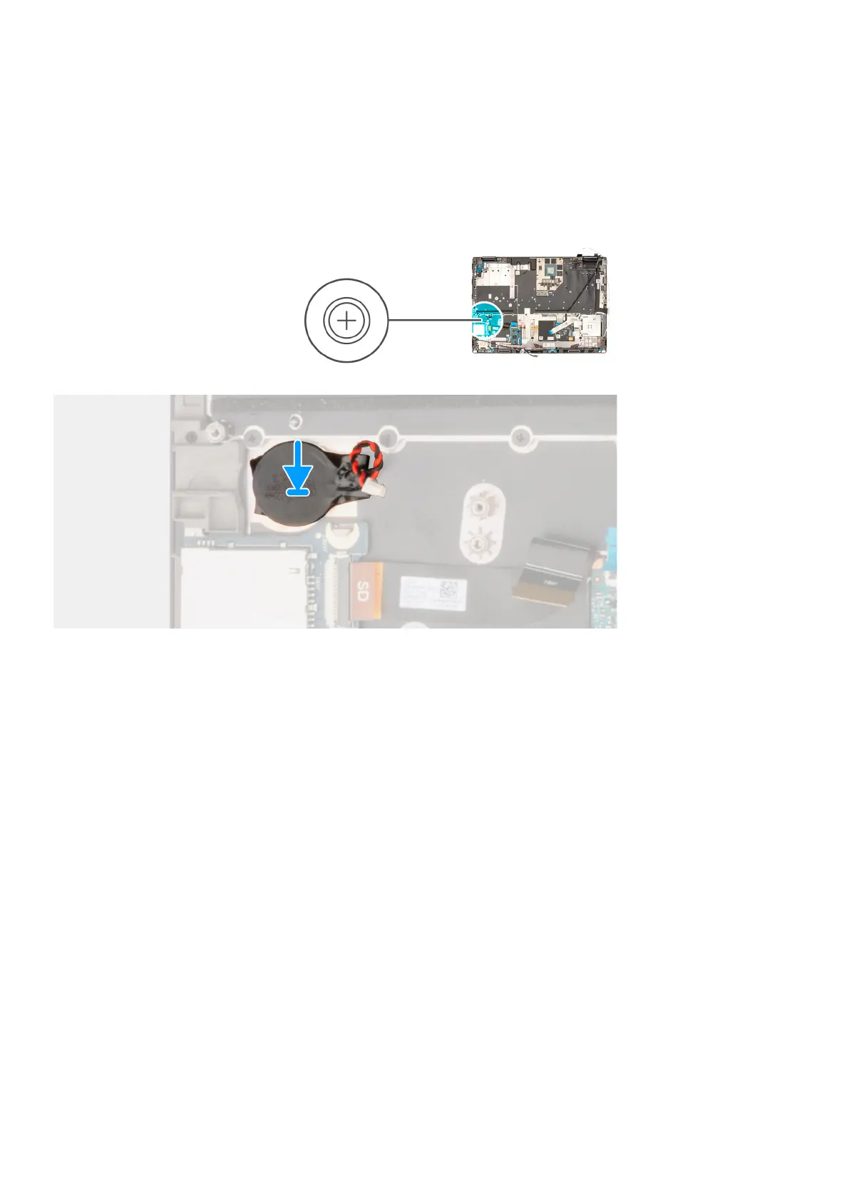 Adhere the coin-cell battery to the palmrest.