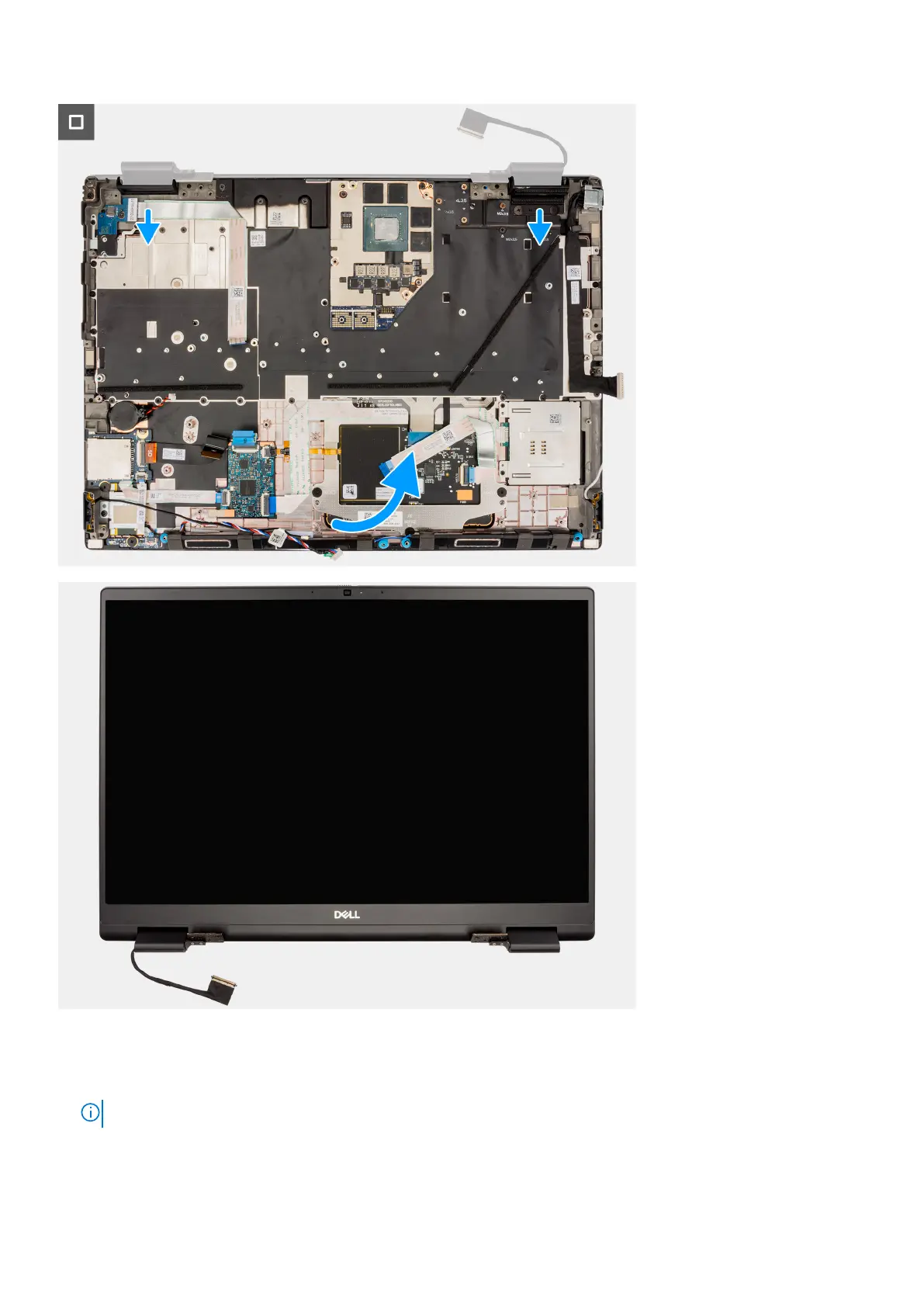 NOTE: For computers shipped with IR camera configuration, disconnect the display cable and IR camera cable.
