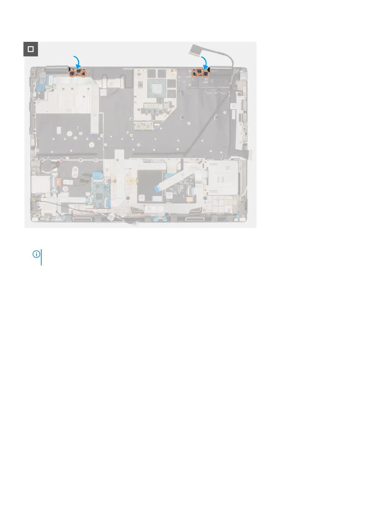2. Replace the six (M2.5x3) screws to secure the hinges to the palm rest.