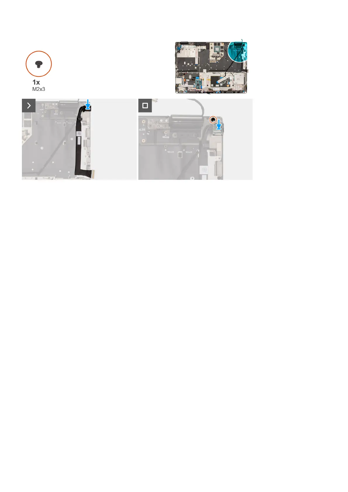 3. Replace the (M2x3) screw to secure the power-adapter port bracket to the computer.