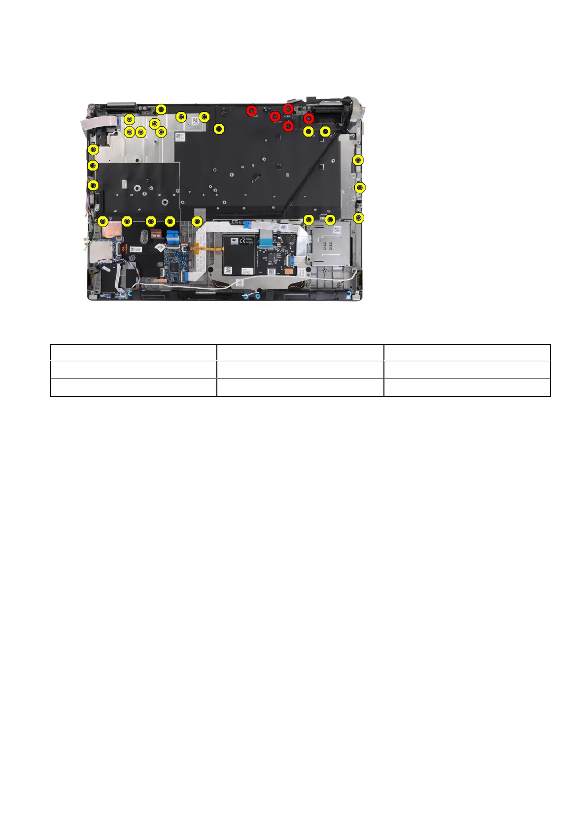 2. Remove the 24 (M2x2.5) and five (M2x3.5) screws that secure the keyboard support place to the palm rest.