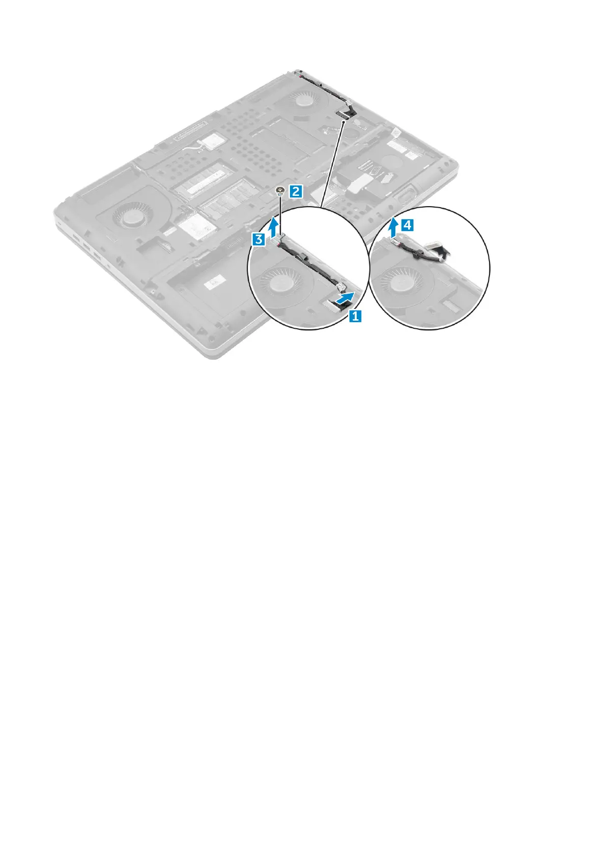 4. Replace the M2.5x5.0 screw to secure the power connector port to the computer.