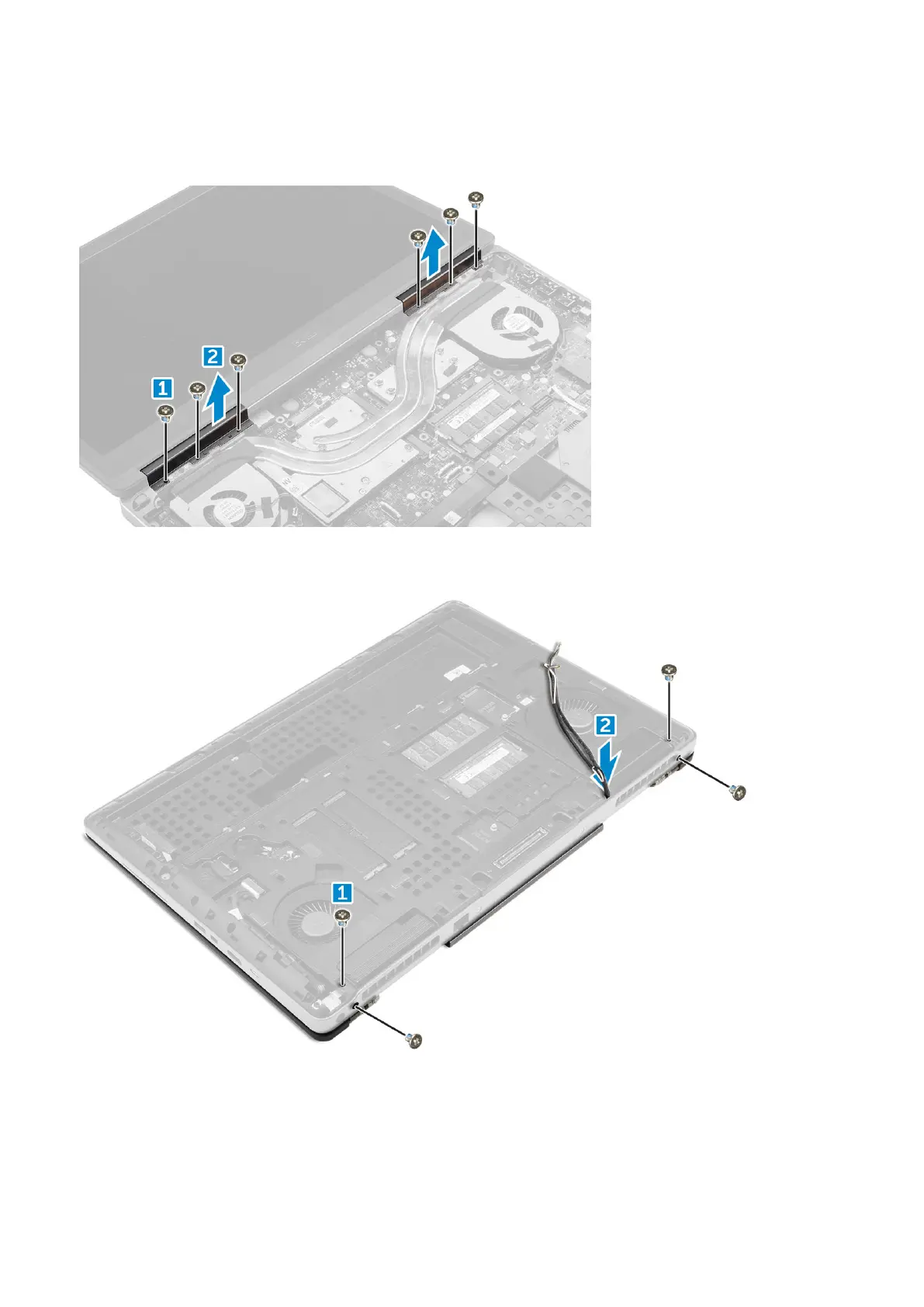 a) Remove the M2.5x4.0 screws that secure the hinge caps [1].