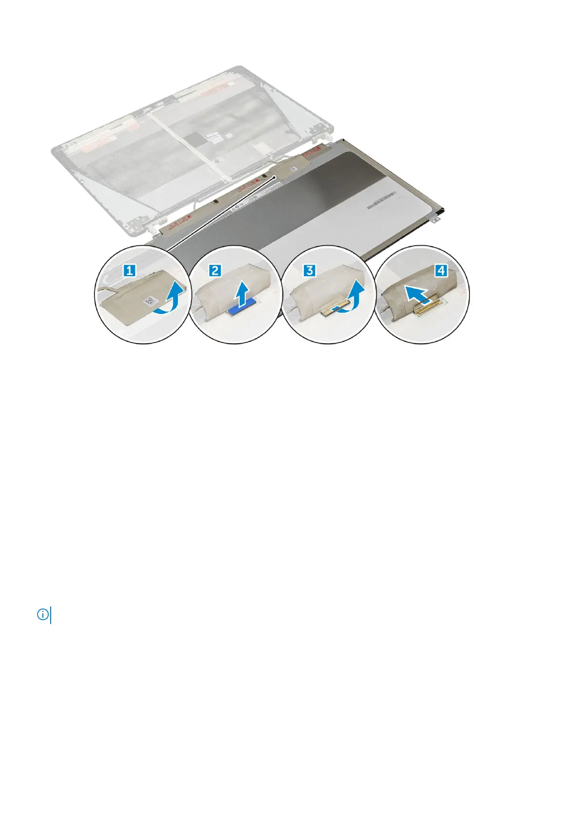 a) Connect the eDP cable to the connector on the back of the display panel and affix the adhesive tape.