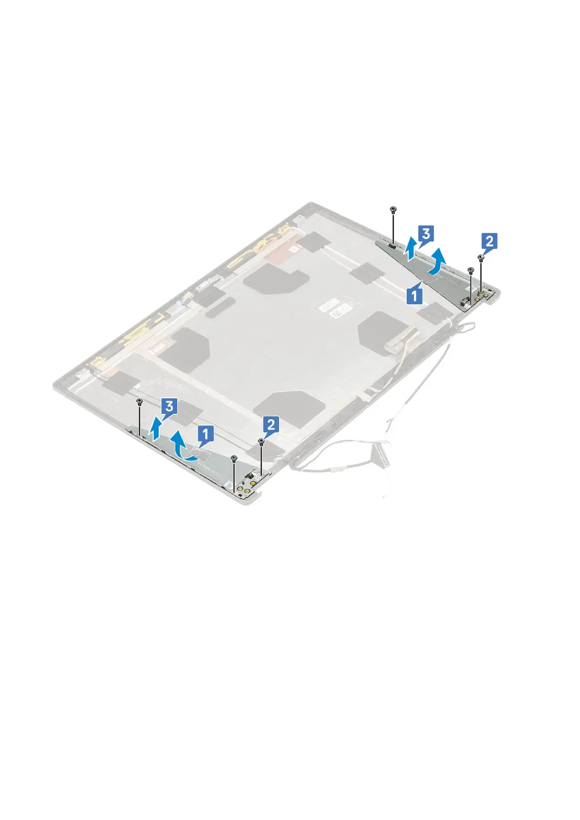 b. Remove the 6 (M2.0x3.0) screws that secure the display support brackets to the display cover [2].