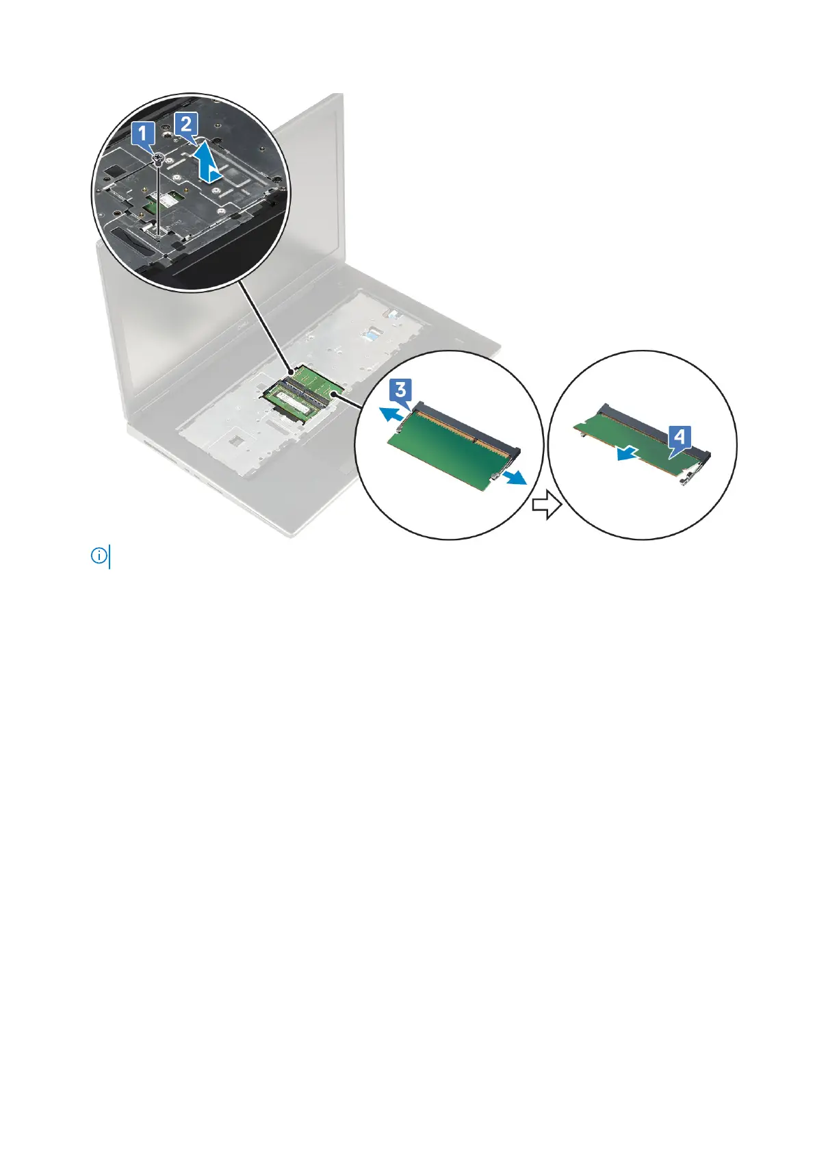 d. Replace the single (M2.0x3.0) screw to secure the memory shield to the memory module [4].