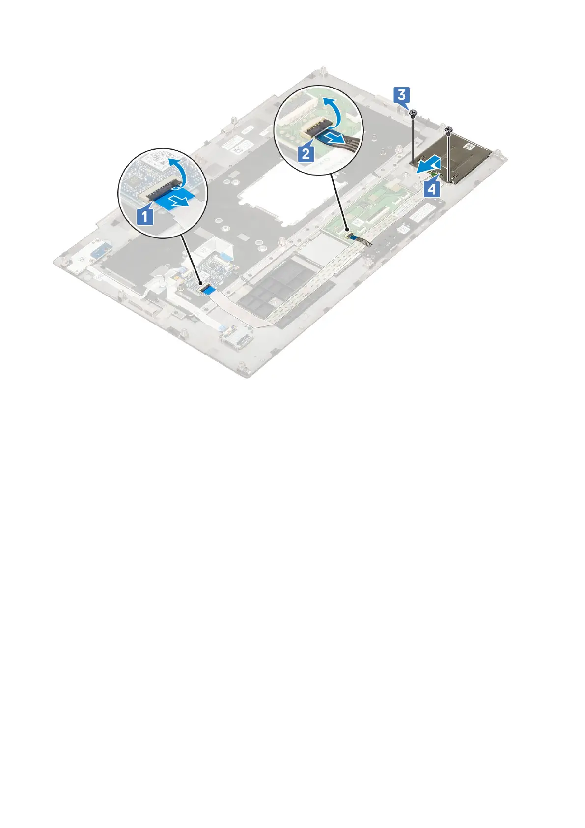 d. Connect the touchpad button cable to the connector on the touchpad [3].