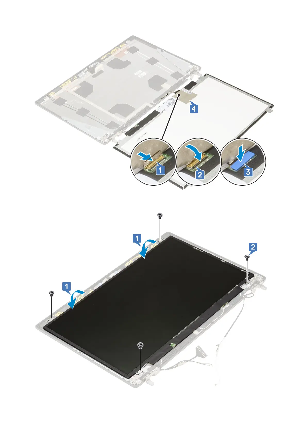 c. Replace the 4 (M2.0X3) screws to secure the display panel to the display assembly.