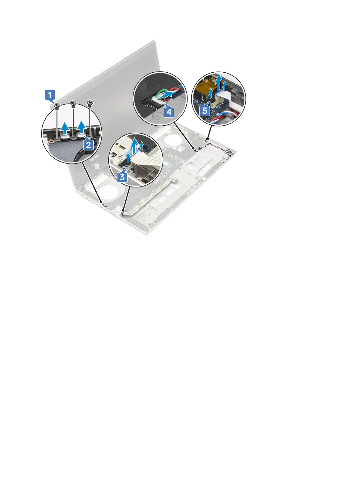 e. Remove the 2 (M2.5x5.0) screws that secure the system board in place [1].