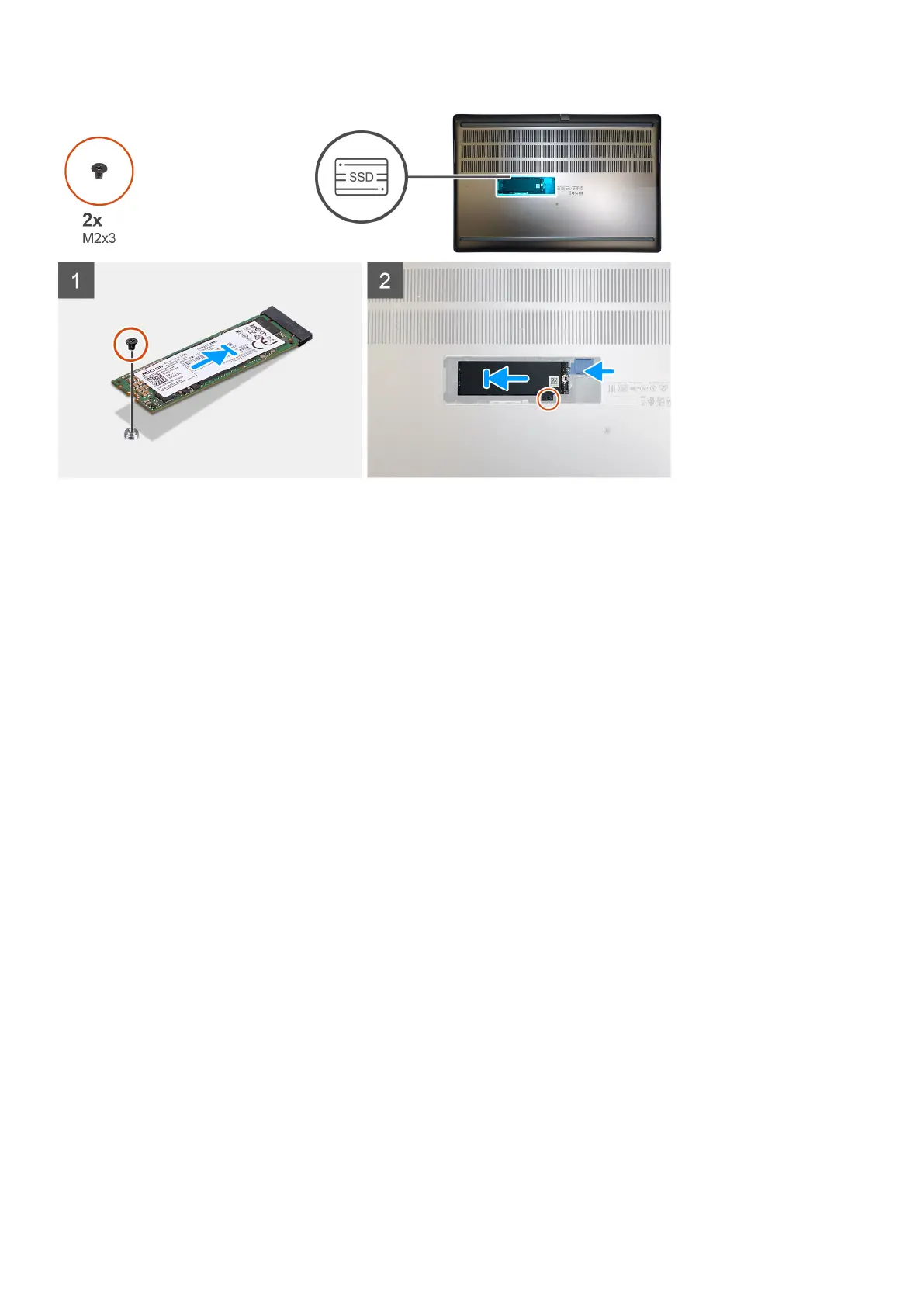 6. Replace the (M2x3) screw to secure the SSD module in place.