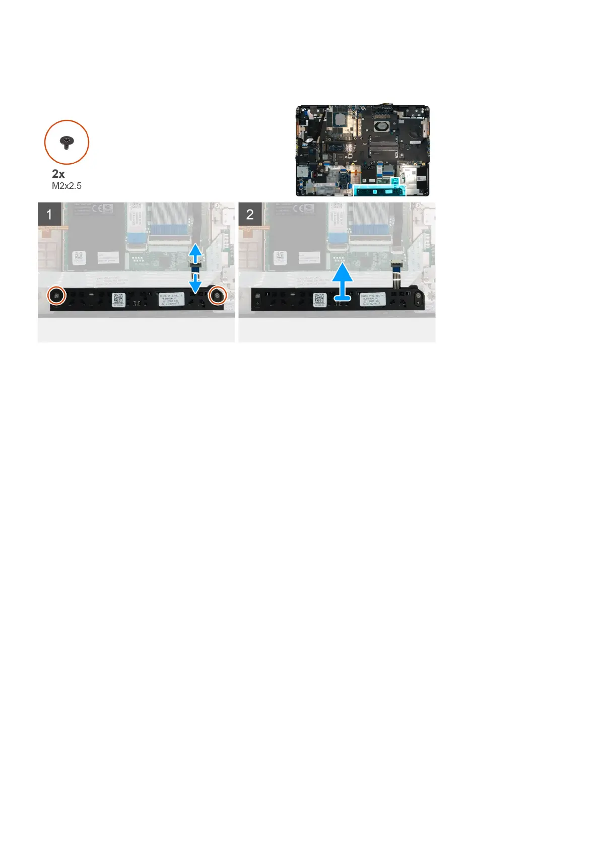 3. Remove the two (M2x2.5) screws that secure the touchpad buttons to the palmrest.