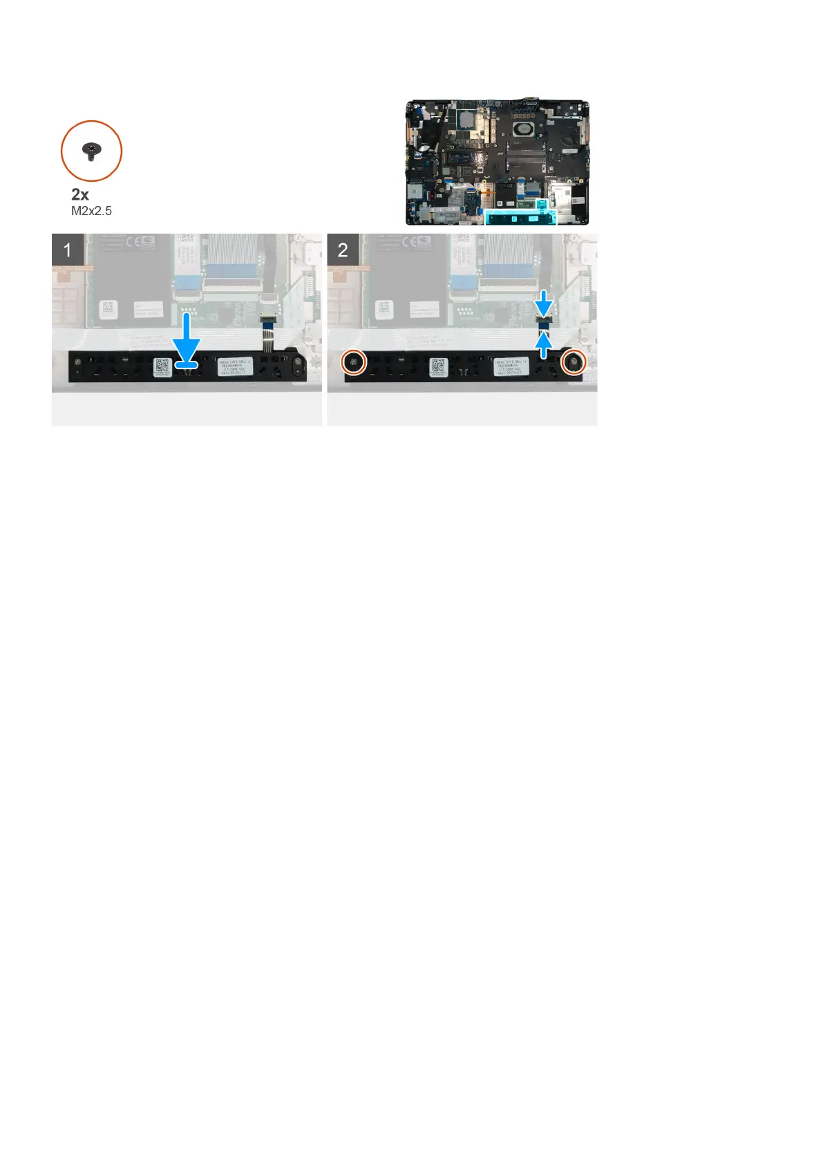 2. Replace the two (M2x2.5) screws to secure the touchpad buttons to the palmrest