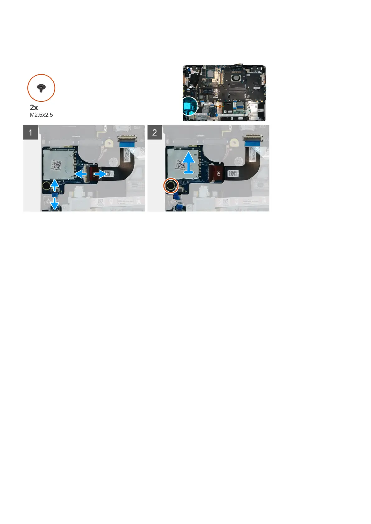 3. Remove the (M2.5x2.5) screw that secures the SD card reader in place.