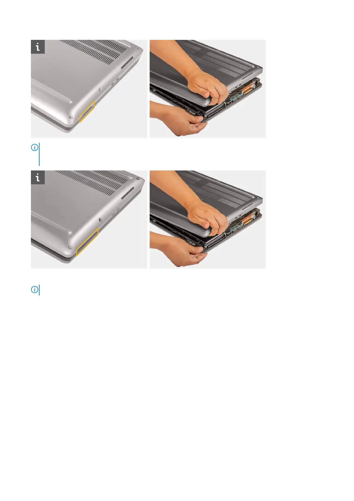 bottom right side of the base cover. Use your fingers to pry open the base cover as the use of plastic scribe or any