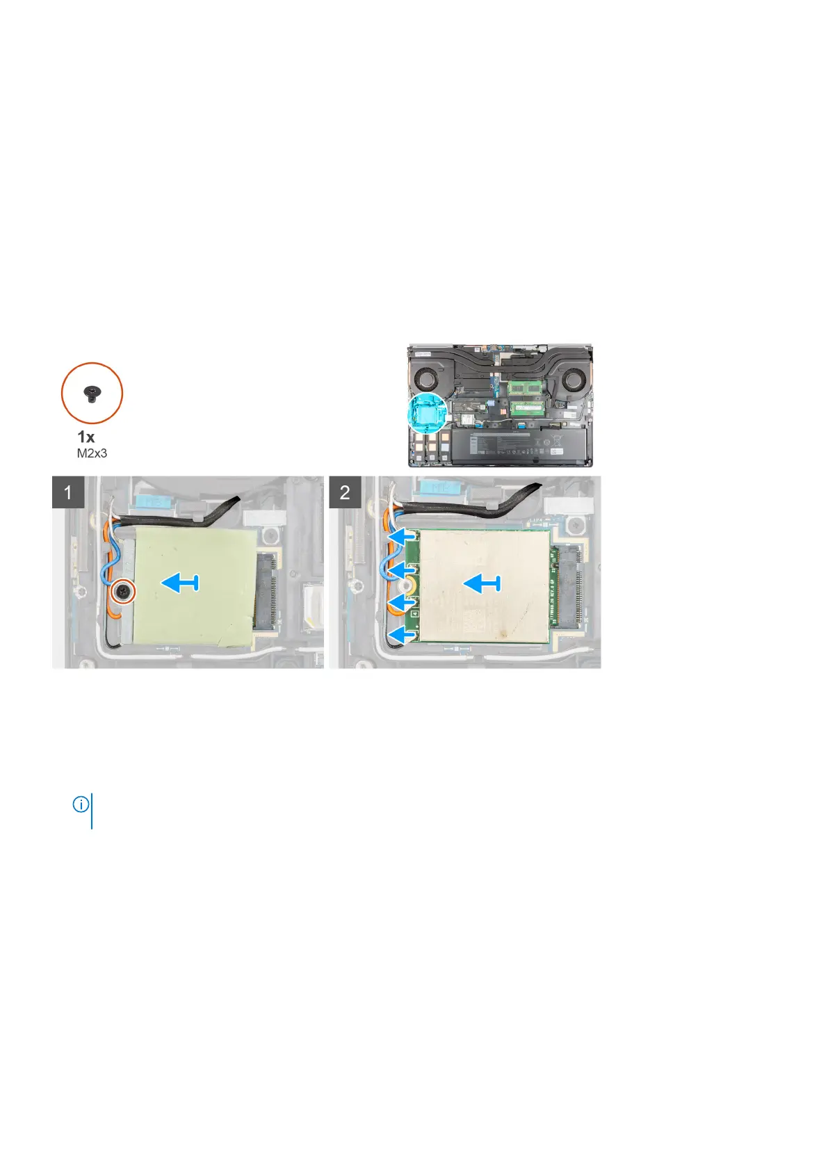 1. Loosen the (M2x3) screw that secures the WWAN card bracket to the system board.