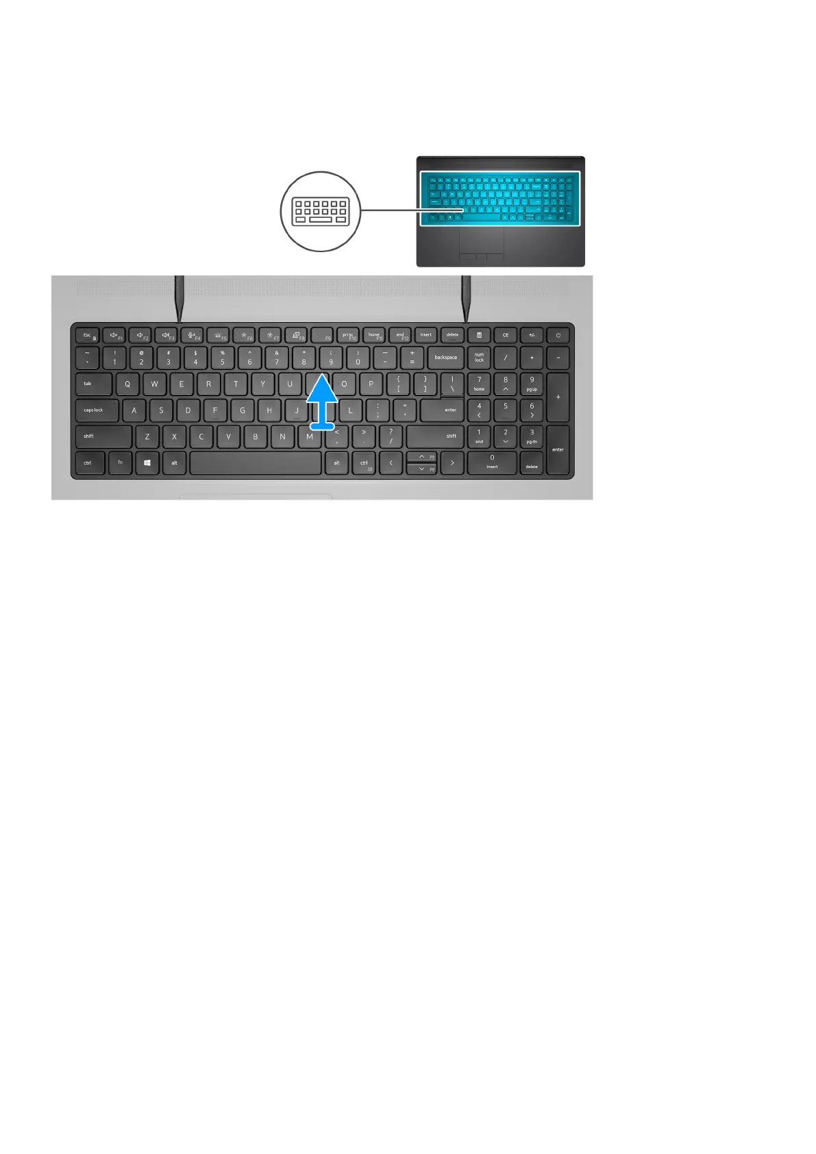 The figure indicates the location of the keyboard lattice and provides a visual representation of the removal procedure.