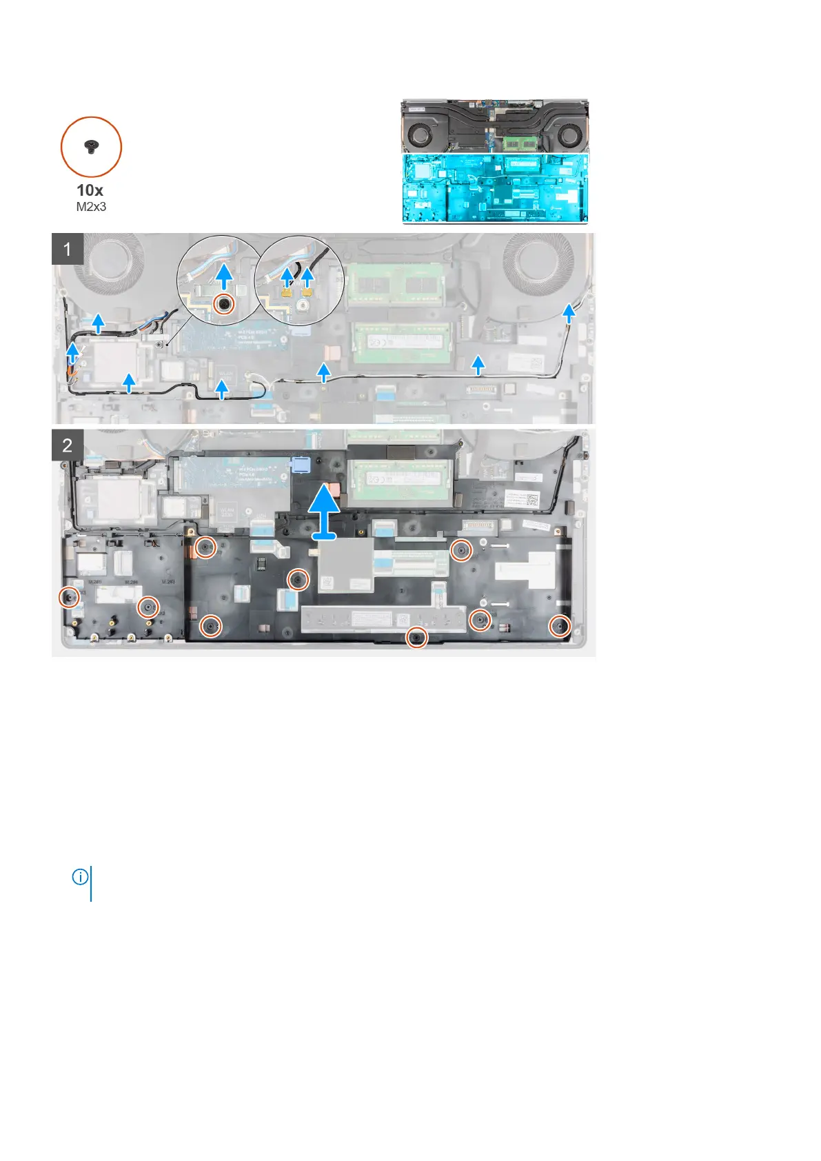 4. Remove the ten (M2x3) screws that secure the inner frame to the computer chassis.
