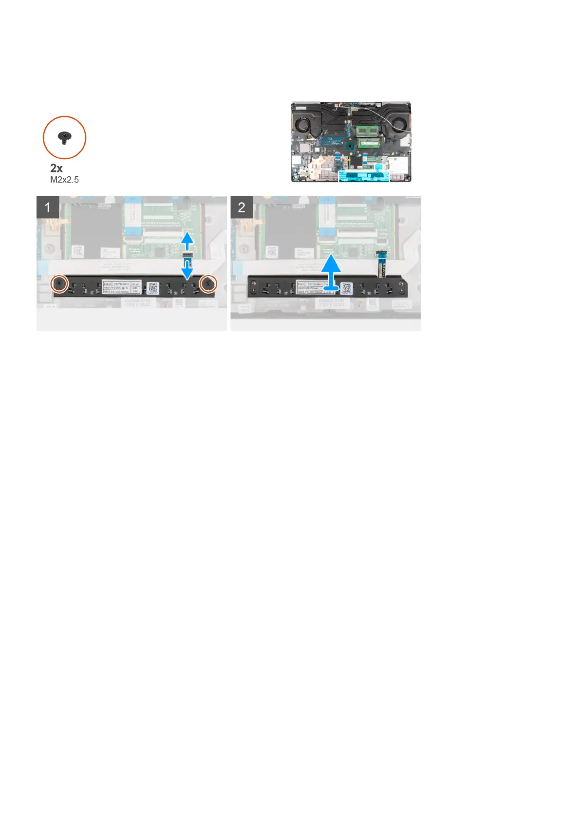 3. Remove the two (M2x2.5) screws that secure the touchpad buttons to the palmrest.