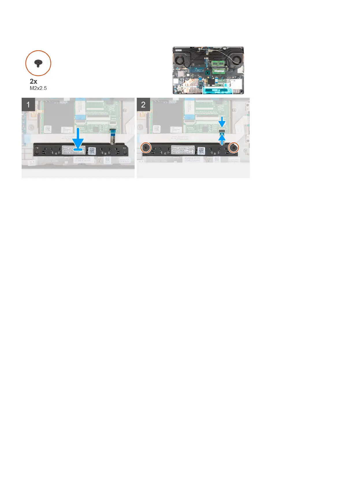 2. Replace the two (M2x2.5) screws to secure the touchpad buttons to the palmrest.
