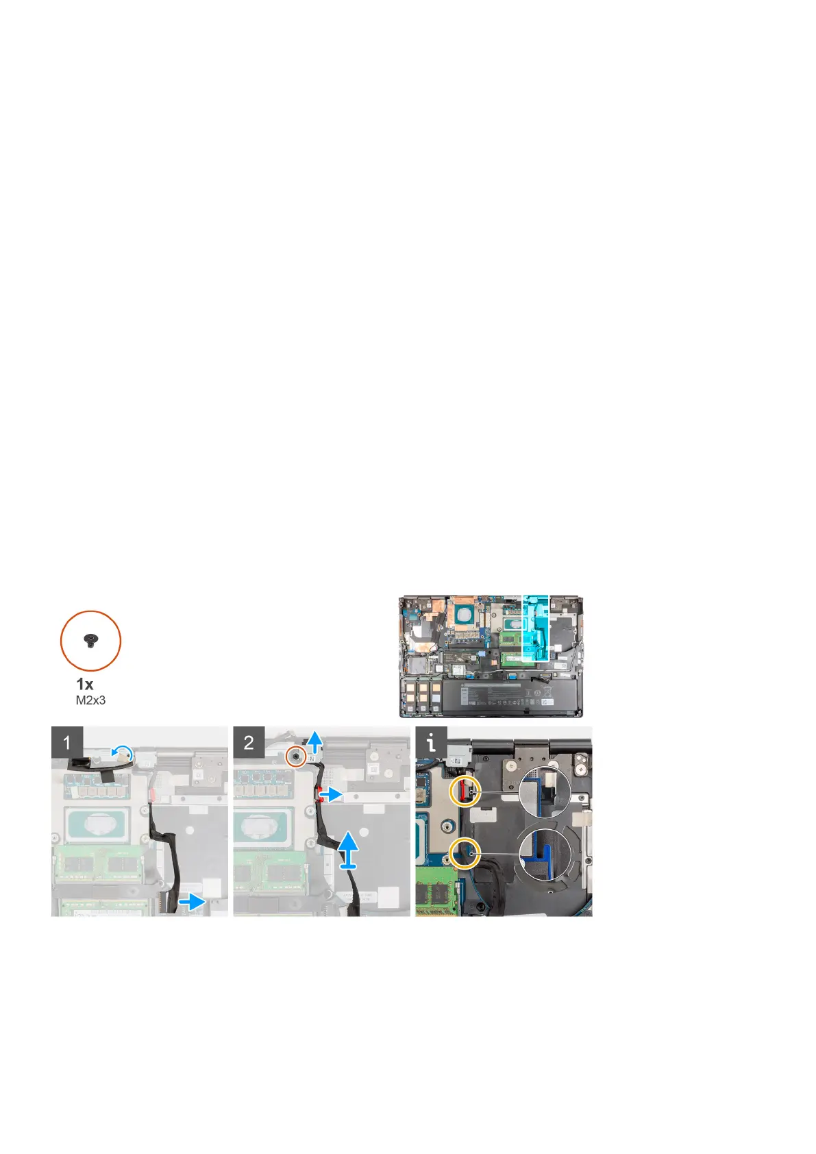 2. Peel and unroute the display cable from the route to access the power-adapter port slot.