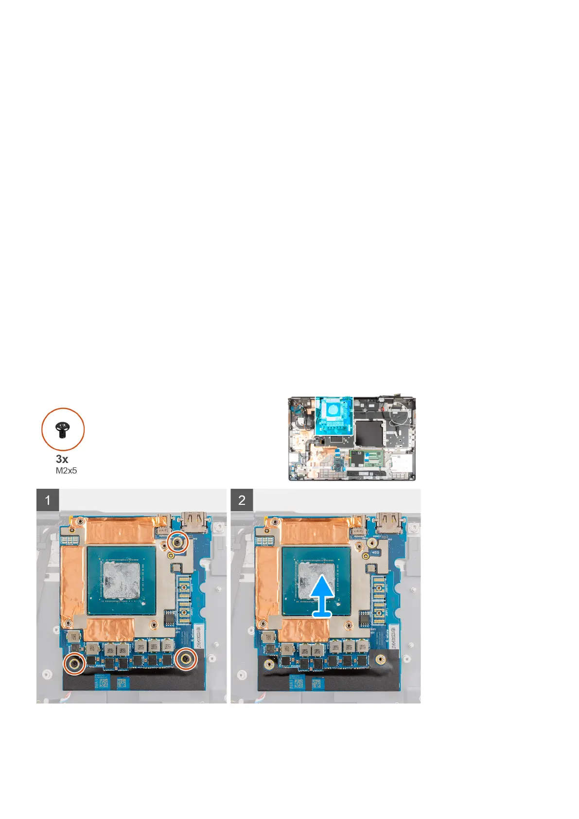 The figure indicates the location of the GPU card and provides a visual representation of the removal procedure.