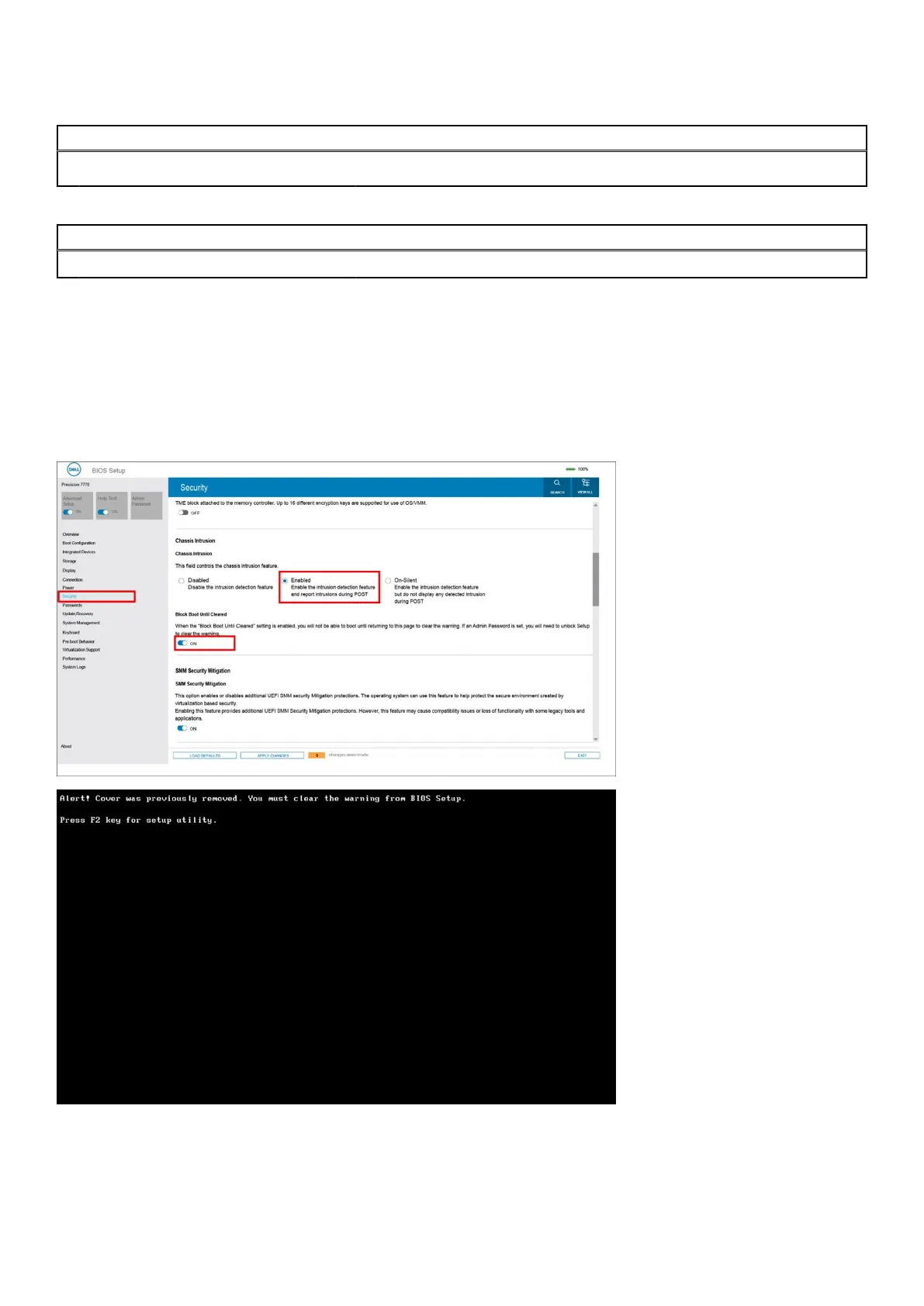 When enabled, the Block Boot Until Cleared field allows you to choose whether to prevent normal boot up of the system until